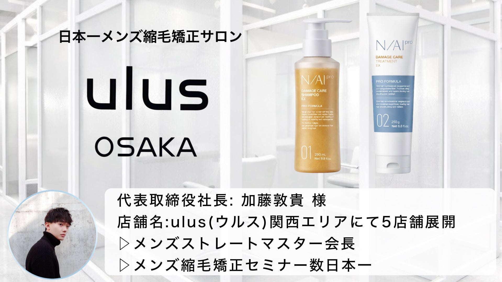メンズ縮毛矯正日本一 加藤敦貴氏 が率いる ulus (ウルス)様にて、