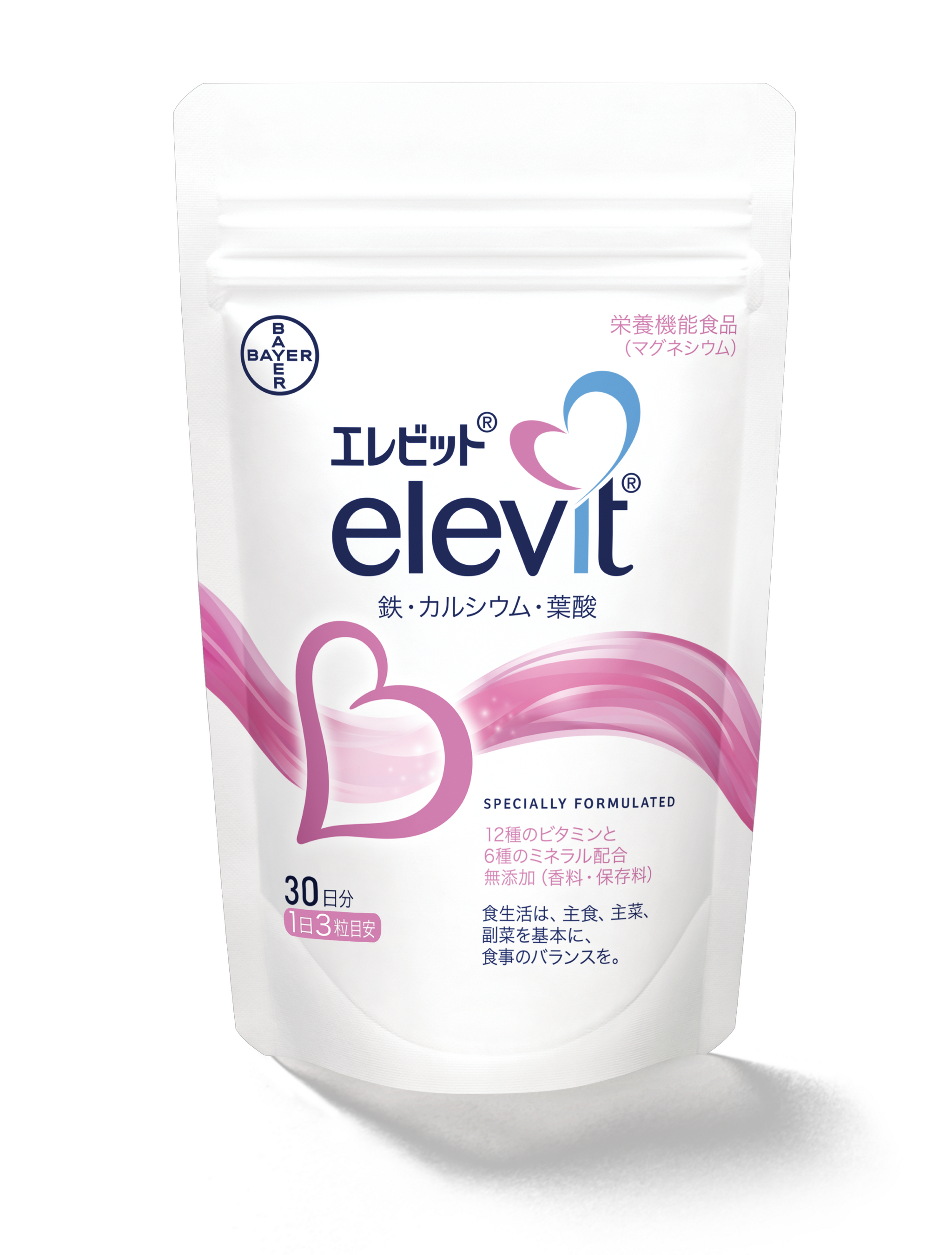 「エレビット®(プレナタルケア)」は、栄養が不足しがちな日本人女性のために作られ、妊活・妊娠中の女性と、お腹の赤ちゃんの成長に不可欠なマグネシウムや葉酸をはじめ、12種類のビタミンと6種のミネラルが、厚生労働省の栄養推奨量を基準に配合されています。