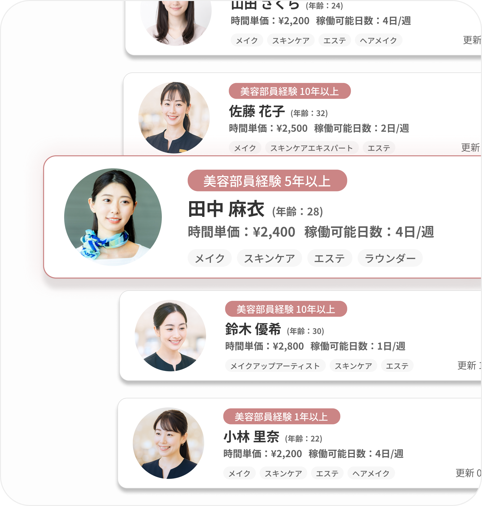 ⚫︎ 美容部員(BA) / メイクアップアーティスト / トレーナーなど即戦力人材が多数登録