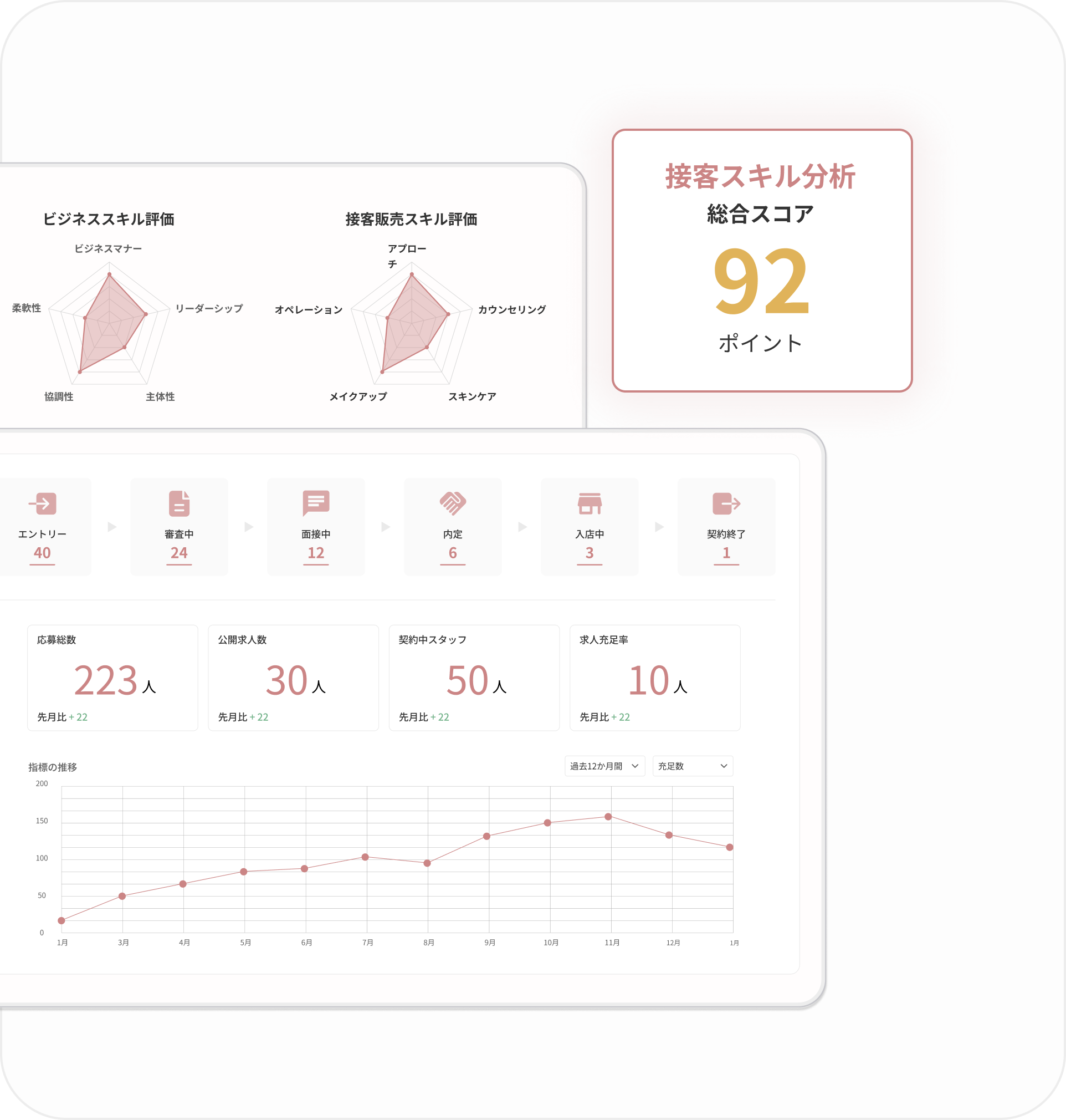 当社はこれまで、8,000名以上の美容人材データベース と 50ブランド以上への人材支援実績 を持つ「メイクミーキャリア」を通じて、現場に深く入り込み、これらの課題と向き合ってきました。その知見をもとに、「採用・教育・定着化」プロセスを再定義し、AIを始めとした先端テクノロジーを活用して各プロセスを高度化する次世代プロダクト として誕生したのが、「メイクミークラウド (Make-Me Cloud)」です。