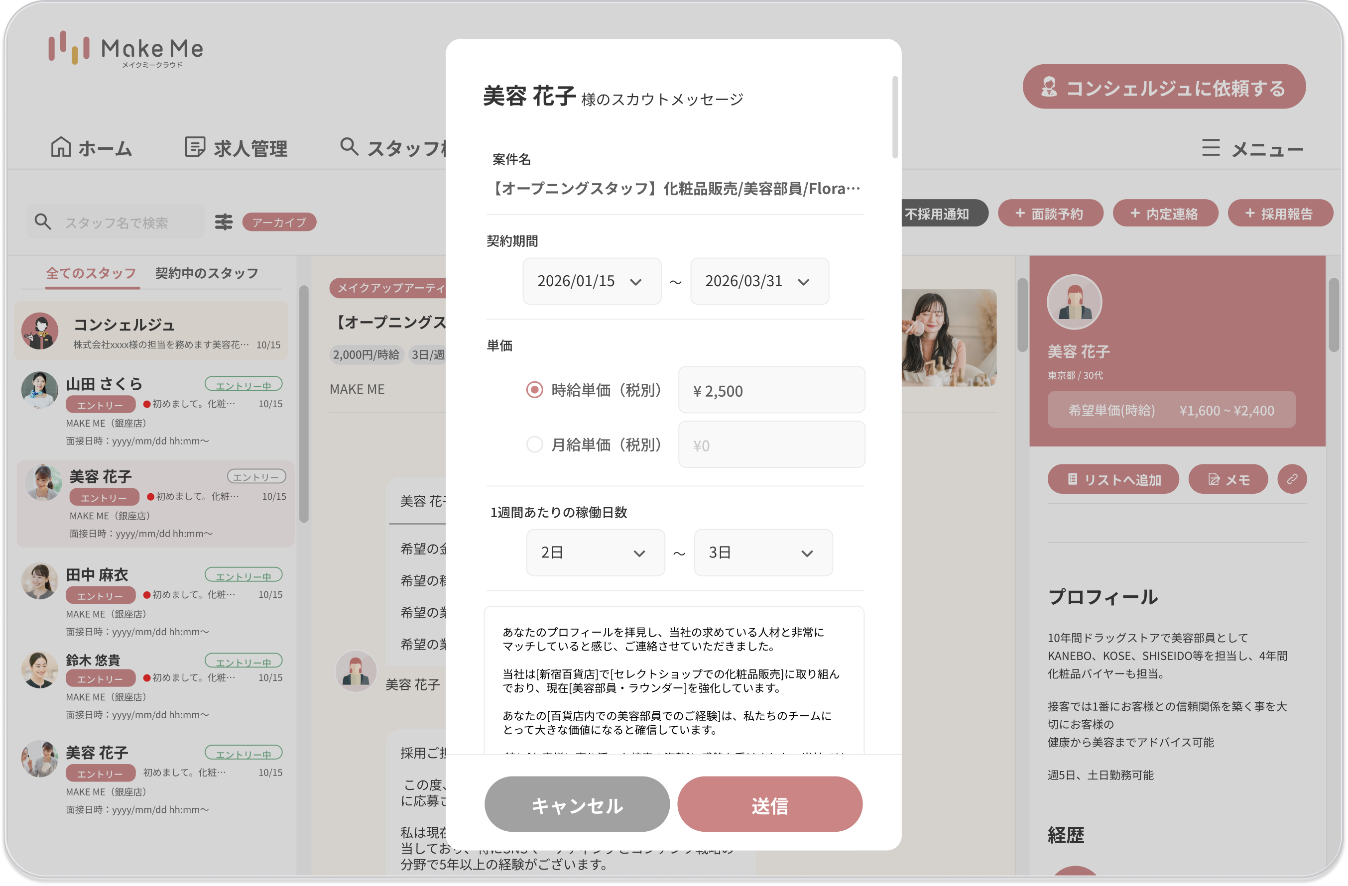 メイクミークラウドは、化粧品・美容ブランドが即戦力人材を中抜きなし・成果連動型で採用できる