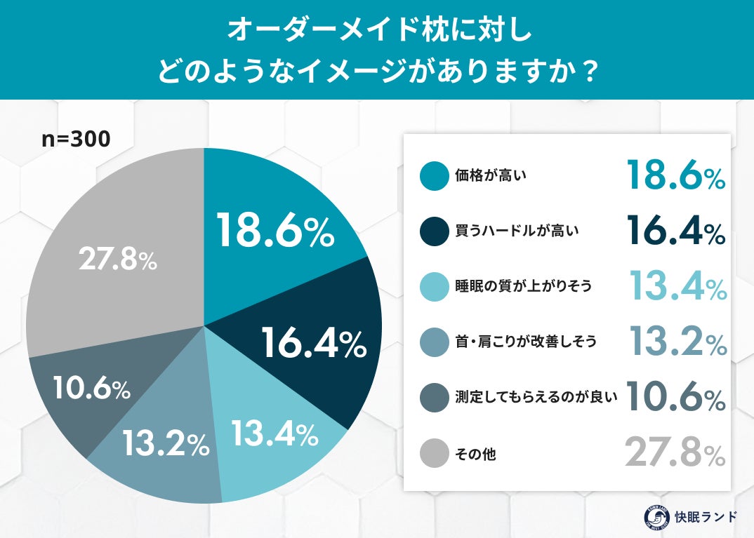 年末年始は、買い替え需要や「自分へのご褒美消費」が高まりやすいタイミングです。近年は、モノを増やす消費よりも「健康・睡眠・体調管理」といった“生活の質を高める投資”への関心が高まっています。オーダーメイド枕は、首や肩への負担軽減、睡眠の質向上が期待される一方で、価格や購入プロセスへの心理的ハードルも指摘されがちです。今回の調査では、こうしたイメージと実際の意識のギャップを明らかにし、生活改善トレンドとしての現在地を可視化しました。