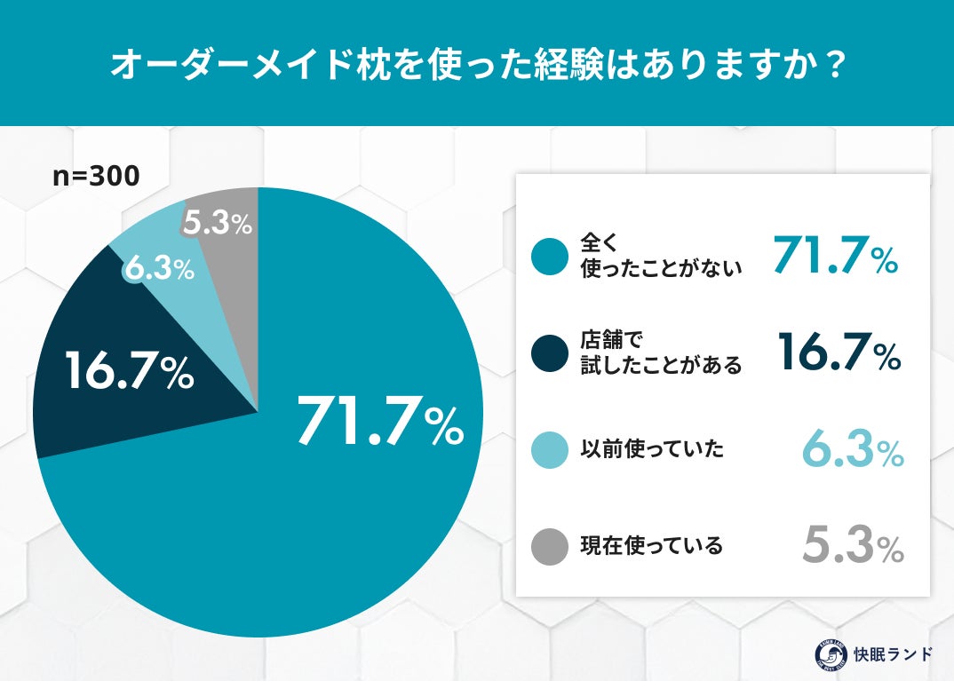 新年を迎え、「生活習慣を整えたい」「睡眠の質を見直したい」と考える人が増える時期。中でも、自分の体型や寝姿勢に合わせて作る“オーダーメイド枕”は、睡眠投資の選択肢として注目されています。一方で、「価格が高そう」「買うハードルが高い」といったイメージも根強く、実際の購入・使用状況は見えにくいのが実情です。快眠グッズ紹介サイト「快眠ランド」を運営するムーンムーン株式会社は、全国の20〜60代男女300名を対象に、「オーダーメイド枕」に関する認知度・使用経験・購入意向・価格意識について調査を実施しました。