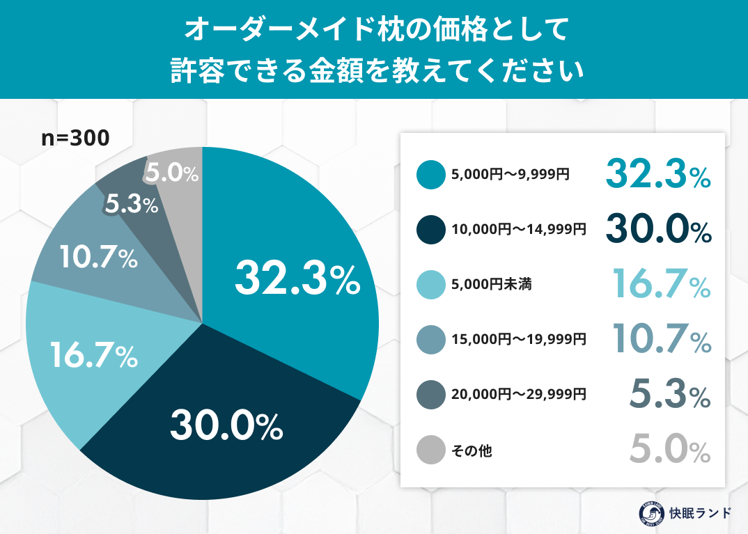 → 8割近くが「1万5千円前後まで」を想定しており、一般的なオーダーメイド枕の価格帯とのギャップが購入の壁になっている可能性があります。