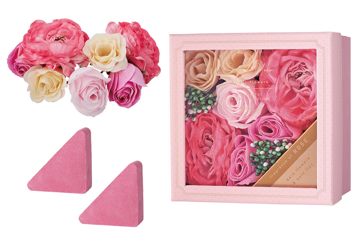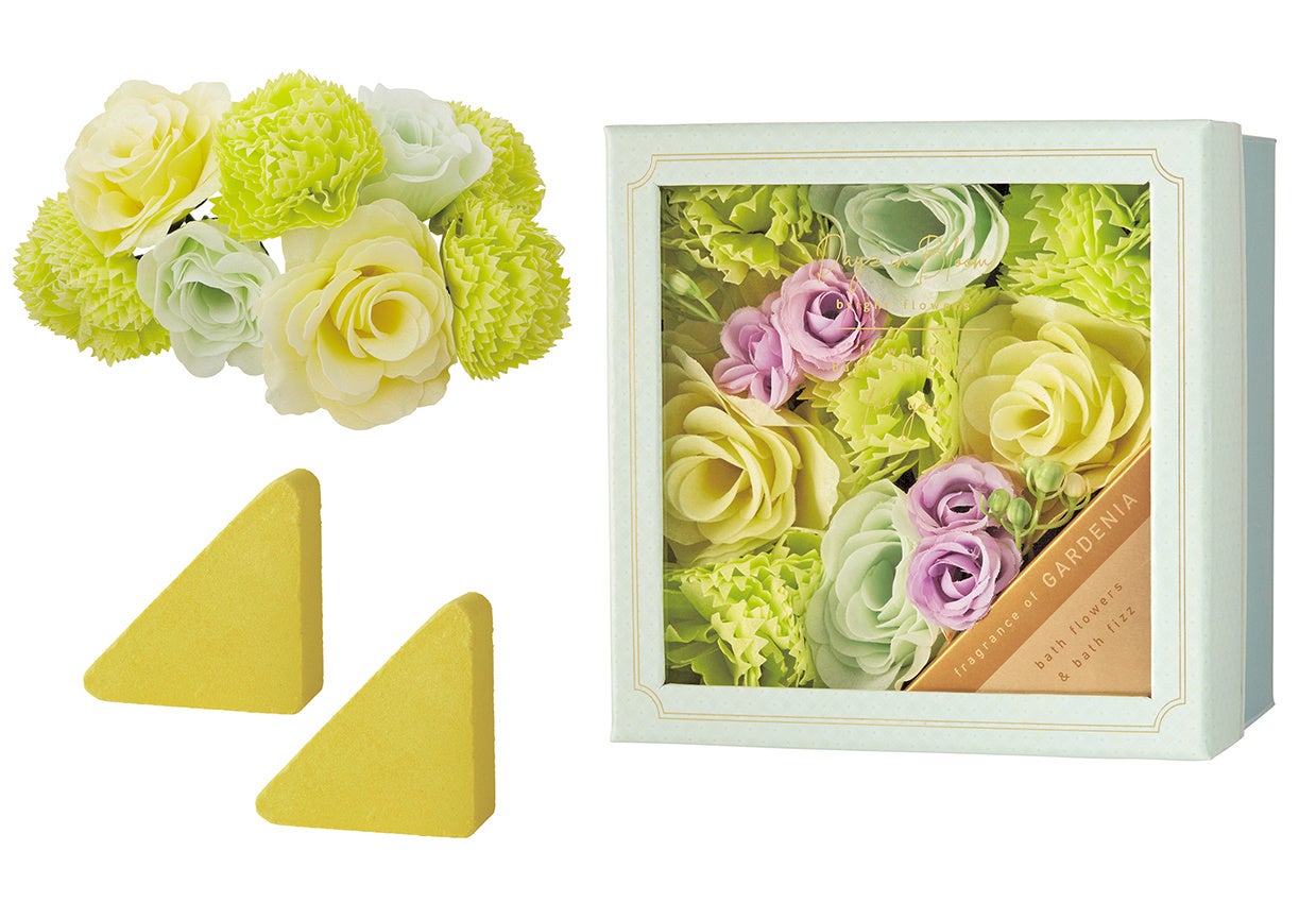 芳潤な花のアロマ香るバスフラワーと発泡タイプのバスフィズ(入浴料)がセットになった、とっておきのバスギフト。
