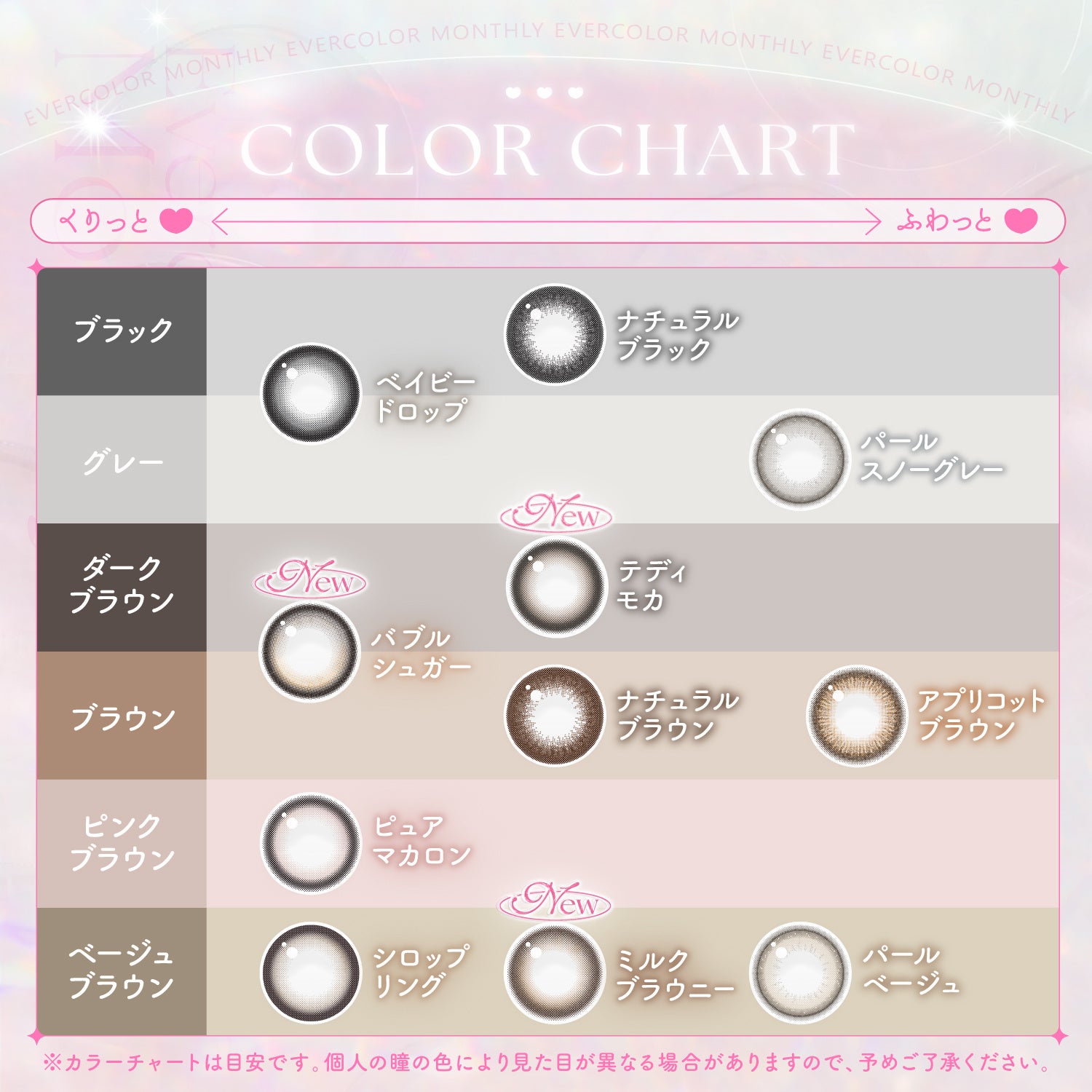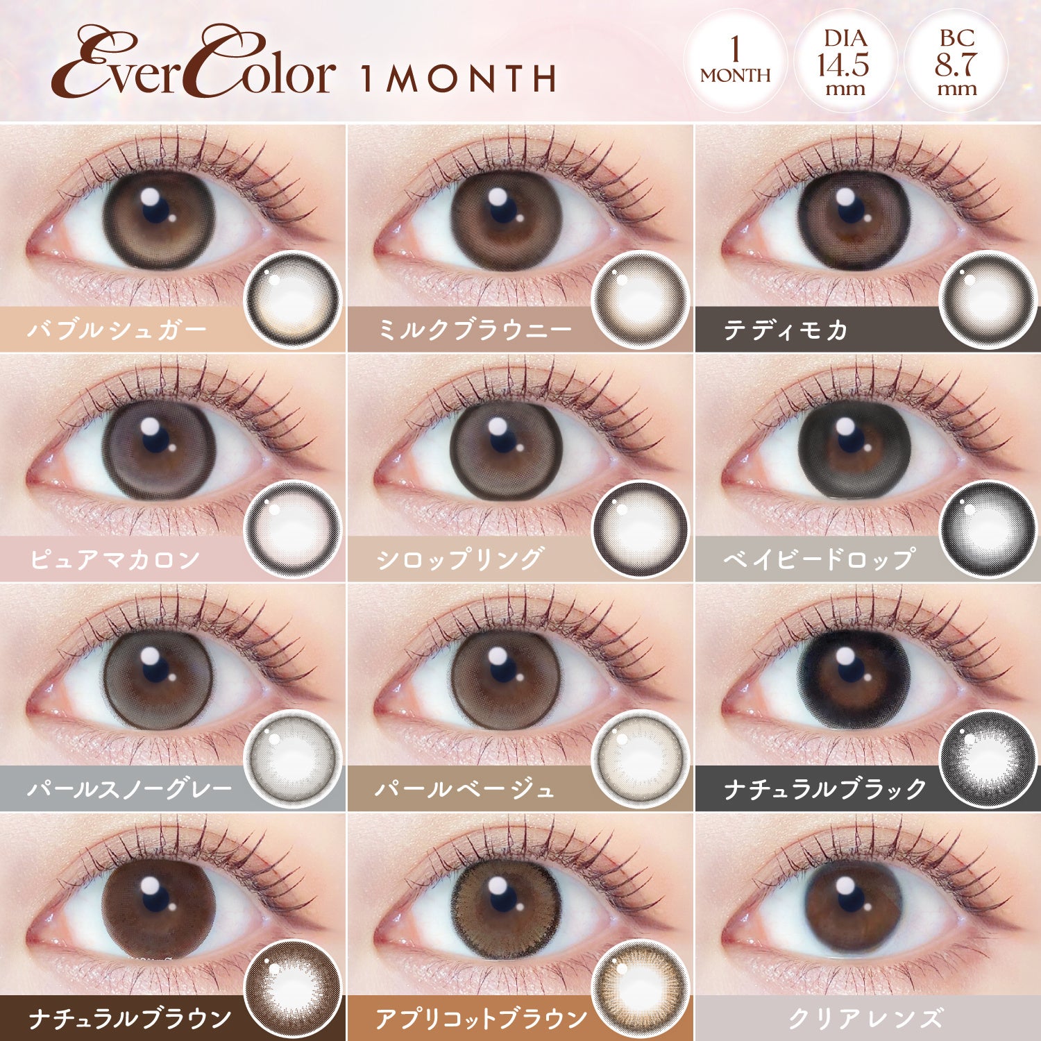 エバーカラーシリーズは、「毎日使えるベーシック感」をベースに、程よくトレンドを取り入れたカラーコンタクトブランドとして幅広く愛用されています。