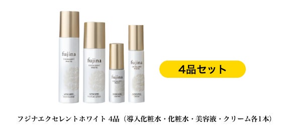 「フジナエクセレントホワイト 4品」(導入化粧水・化粧水・美容液・クリーム 各1本)
