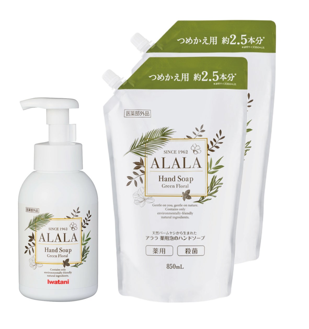 ●「ALALA 薬用泡のハンドソープ詰め替えセット」【医薬部外品】<ハンドソープ本体(350mL)1本、詰め替えパウチ(850mL)2個のセット>