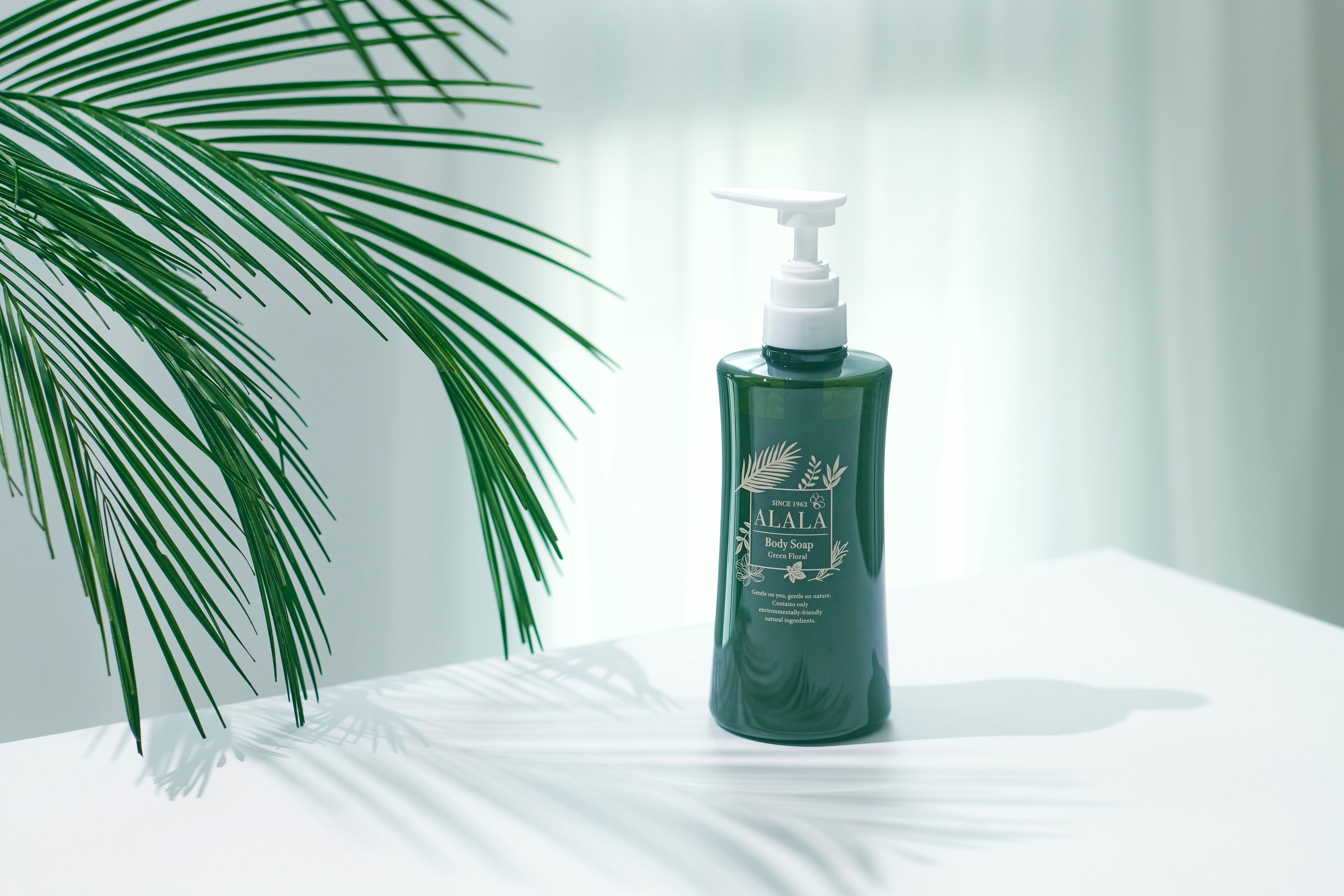 天然パームヤシ油由来のボディソープ。4種のハーブエキスに桃の葉エキスと保湿成分の「リピジュア」を配合。さっぱりと洗い上げながらうるおい感を与える、お肌にやさしいボディソープです。