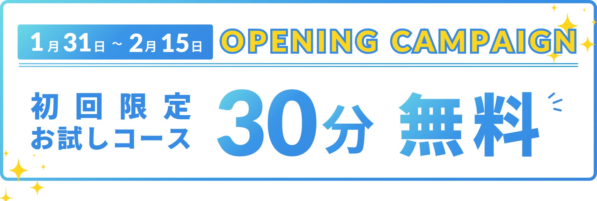 【オープニングキャンペーン情報】30分無料で体験できる限定コースが登場!