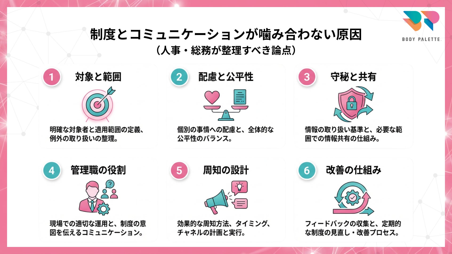 制度とコミュニケーションが噛み合わない原因(人事・総務が整理すべき論点)