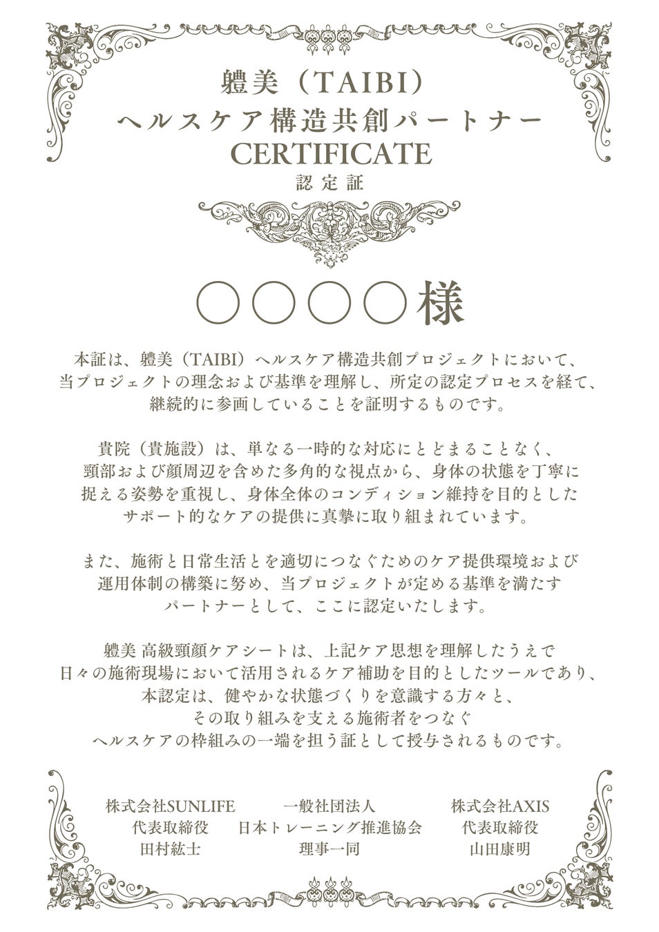 本プロジェクトの思想と構造を共有する治療家には、ヘルスケア構造共創パートナー認定ディプロマが授与されます。