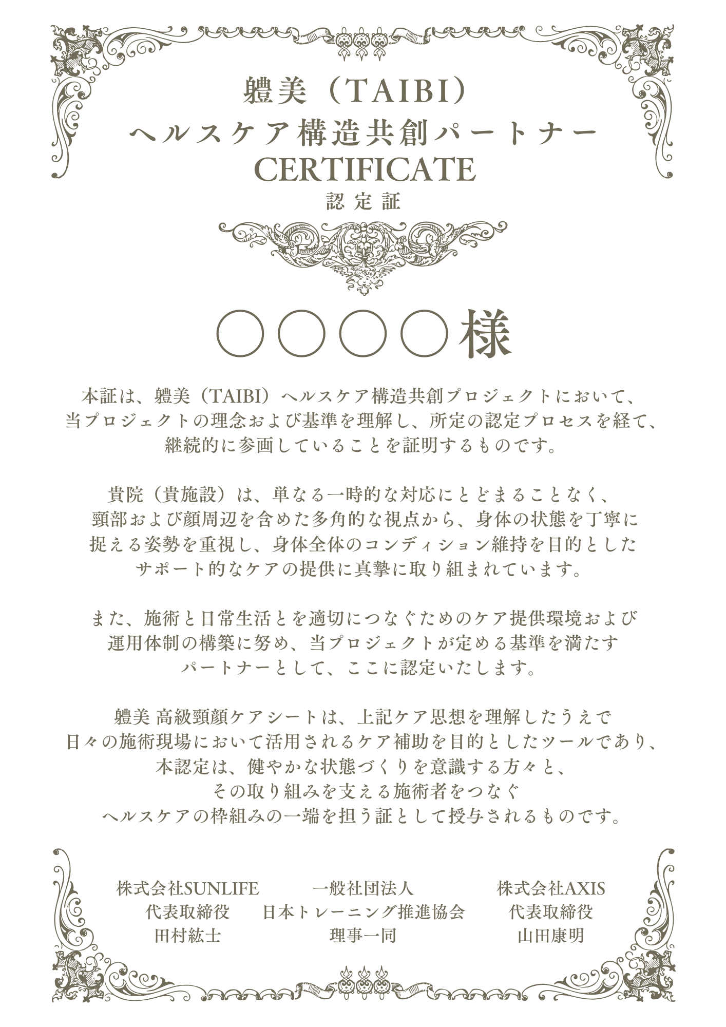 本プロジェクトの思想と構造を共有する治療家には、ヘルスケア構造共創パートナー認定ディプロマが授与されます。