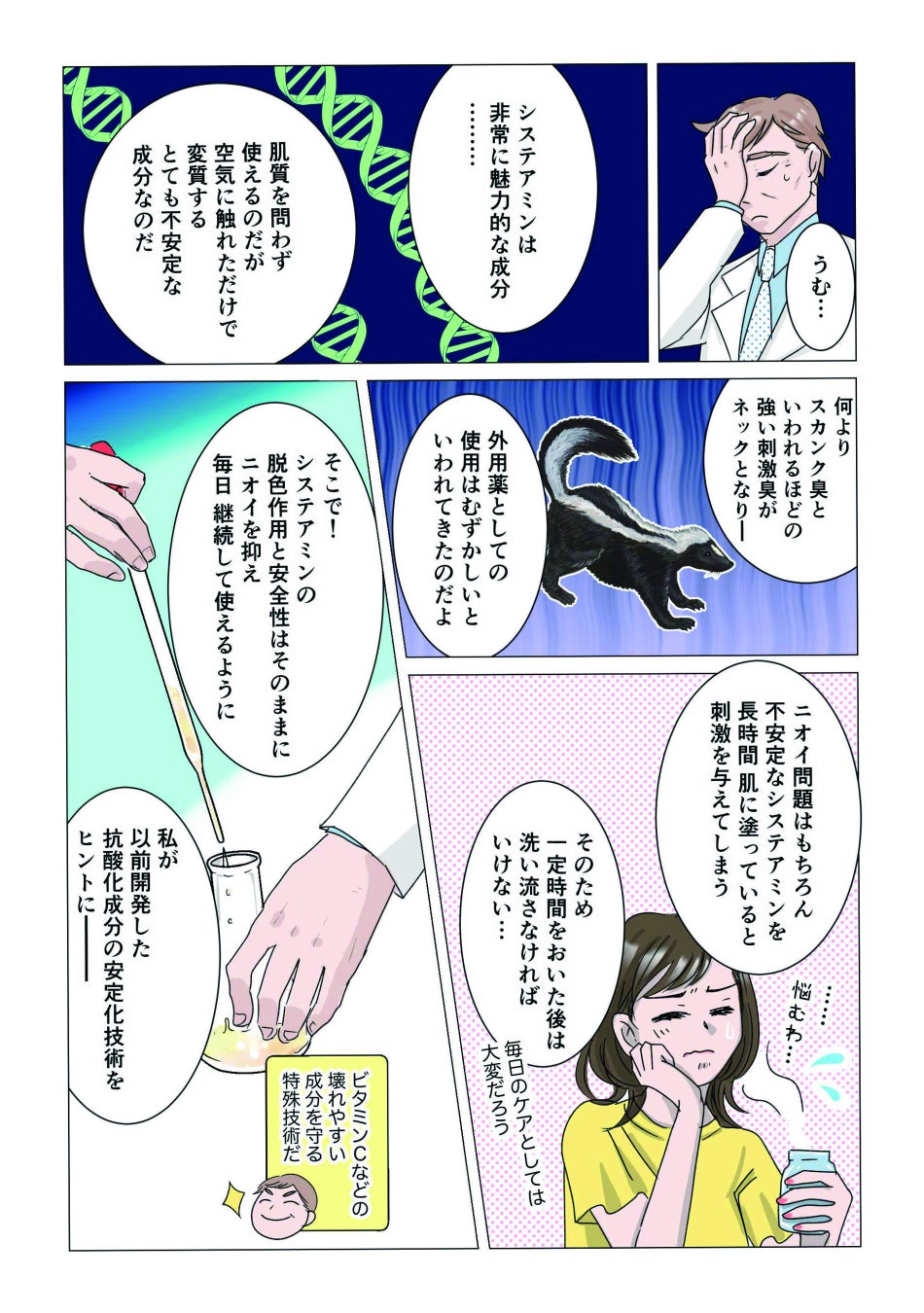 システアミンの安定化について漫画にて分かりやすくご紹介しています。