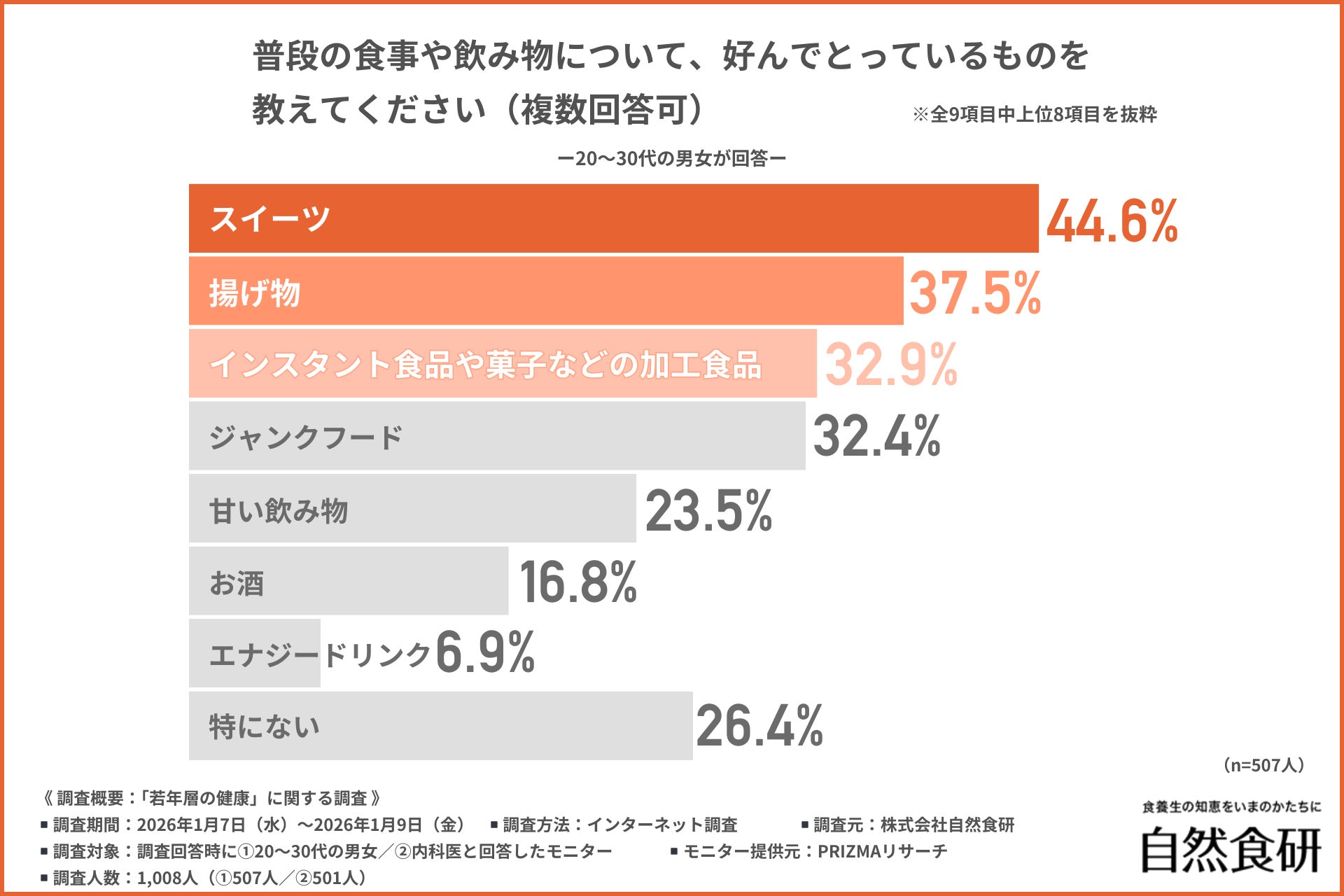 そこで今回、株式会社自然食研https://www.sizenshokken.co.jp/)は、①20~30代の男女/②内科医を対象に、「若年層の健康」に関する調査を行いました。