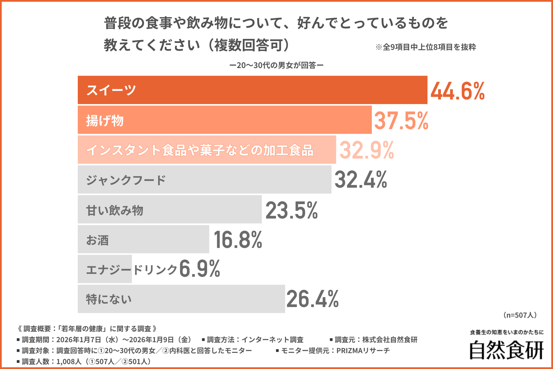 そこで今回、株式会社自然食研https://www.sizenshokken.co.jp/)は、①20~30代の男女/②内科医を対象に、「若年層の健康」に関する調査を行いました。