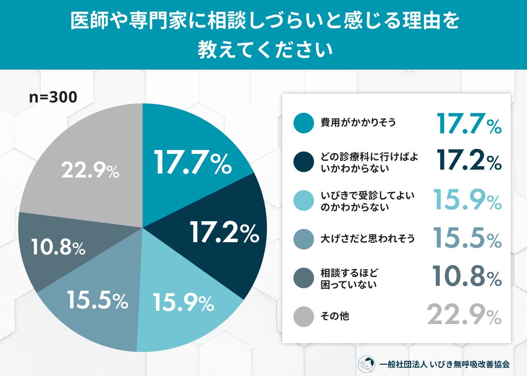 → 「どこにかかればよいかわからない」「いびきで受診してよいのかわからない」といった情報不足や心理的ハードルが、相談の妨げになっていることが読み取れます。