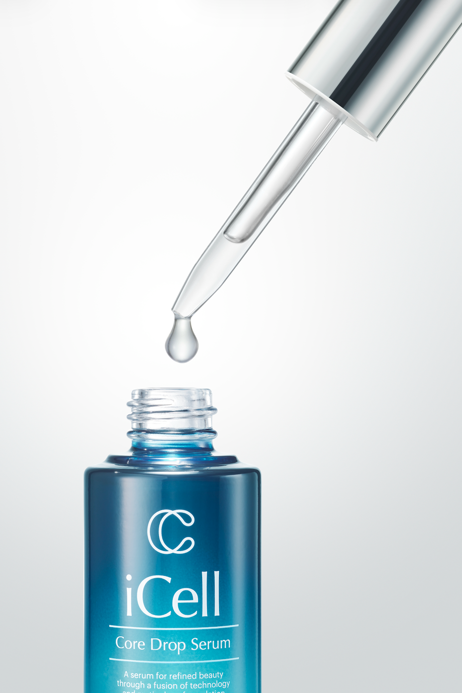 洗顔後、化粧水で肌を整えた後、iCell コアドロップセラムをスポイトで手に取り、顔全体になじませてください。