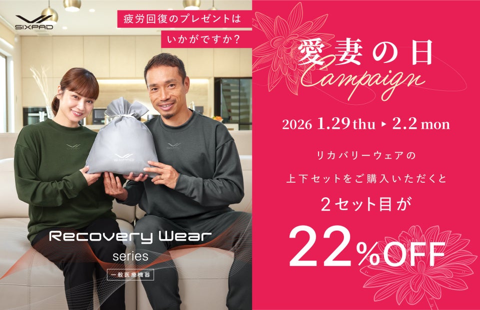 株式会社MTG(本社:愛知県名古屋市、代表取締役社長:松下剛)が展開するトータルウェルネスブランド「SIXPAD(シックスパッド)」は、2026年1月31日(土)の「愛妻の日」にあわせ、Recovery Wear(リカバリーウェア)シリーズの店頭限定キャンペーンを開催いたします。