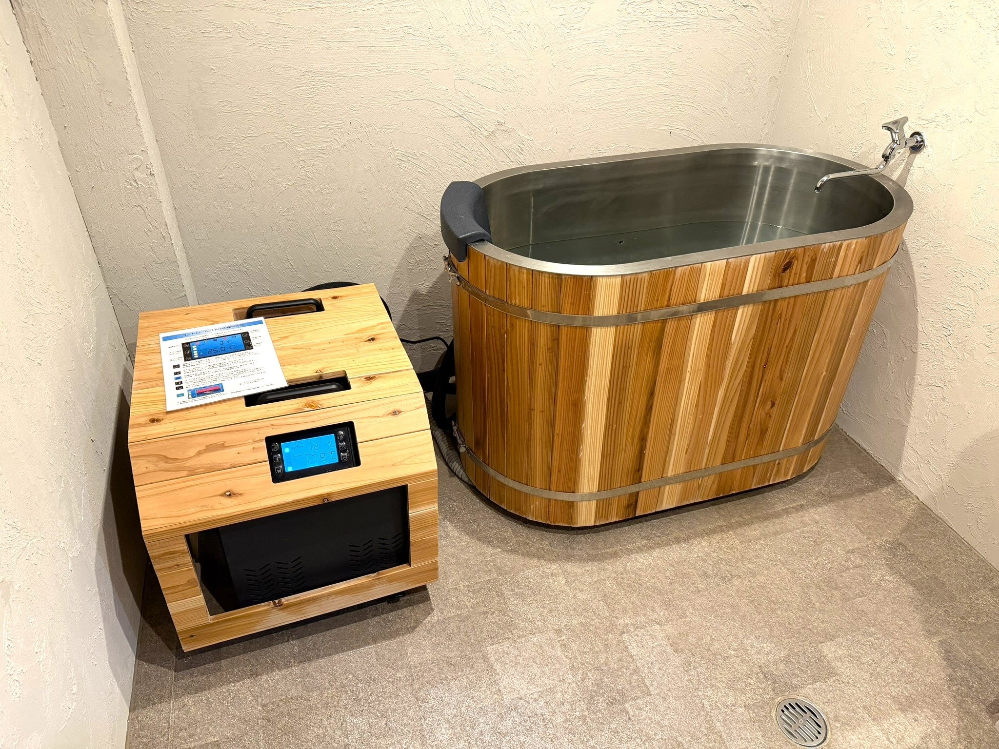 《Hagoromo1s》は、家庭用サウナや都市型ホテル、スモールサウナ施設への導入を想定した、コンパクト設計のチラー水風呂です。