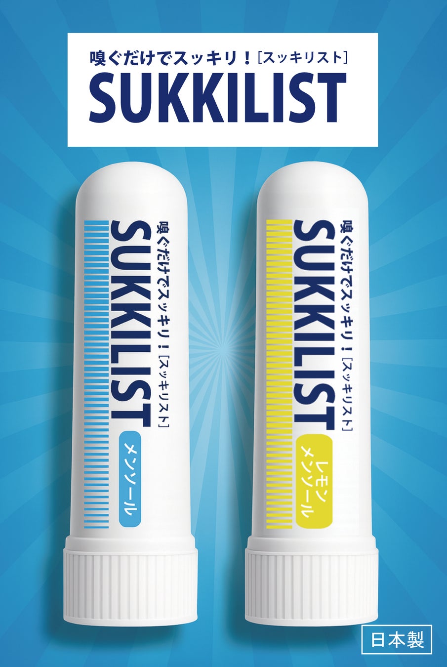 嗅ぐだけでスッキリするアロマグッズ、スッキリスト。爽快感が特徴のメンソールと鮮烈なレモンメンソールの2種類で登場。