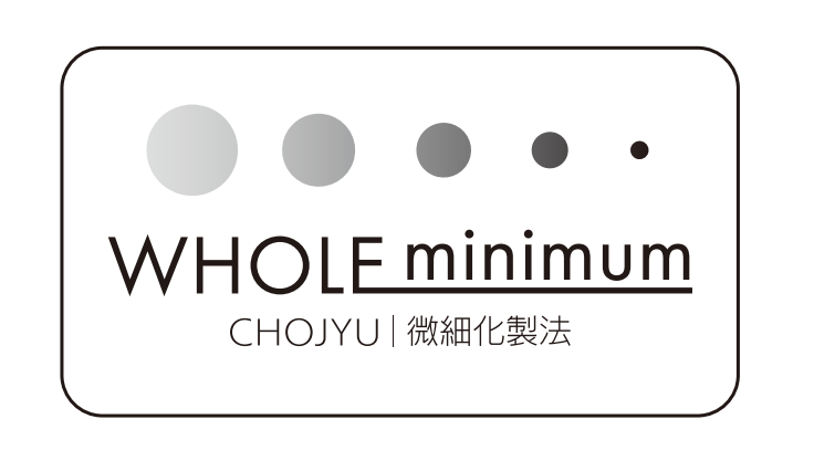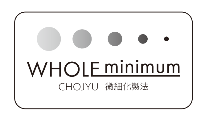 長寿乃里では、この微細化製法を用いた商品展開を「WHOLE minimum(ホール ミニマム)」プロジェクトとして推進します。今後、微細化技術を活用し、製品をまるごと微細化することに成功した製品には、順次この専用ロゴを記載していく予定です。