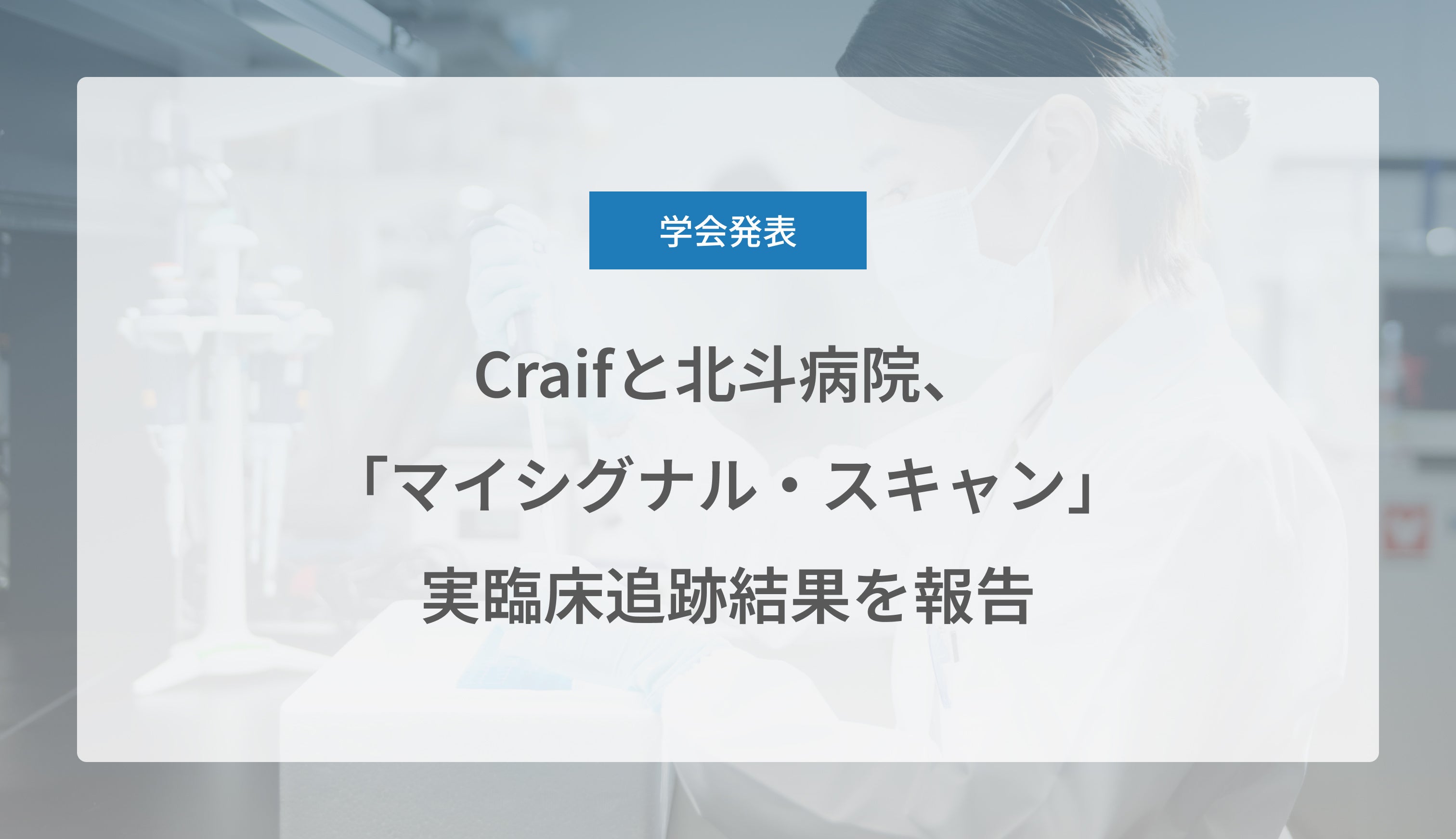 バイオAIスタートアップのCraif株式会社(所在地:東京都新宿区、代表取締役 CEO:小野瀨 隆一、以下「Craif」)は、日本総合健診医学会第54回大会にて、社会医療法人北斗 北斗病院 腫瘍医学研究所・次世代医療研究科 馬場 晶悟 研究員らとともに、リアルワールドデータとして『尿中miRNAによる多がん種スクリーニング検査「マイシグナル・スキャン」の実臨床追跡』を一般演題として発表しました。