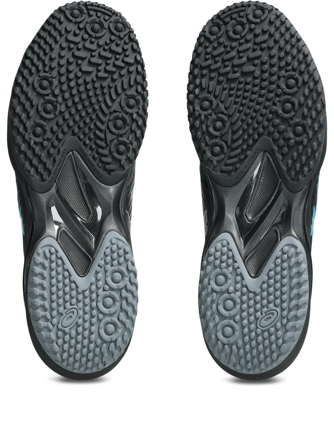 靴底は、プレーを支えるためのグリップ性を追求しています。オールコート用では、プレー中に力のかかる部分を考慮し、網目状の意匠にすることで、グリップ力と柔軟性をよりよいバランスで実現しています。オムニ・クレーコート用では、グリップ力を発揮させるため、意匠の形状と向きの検証を行い、適切な形に設計しています。