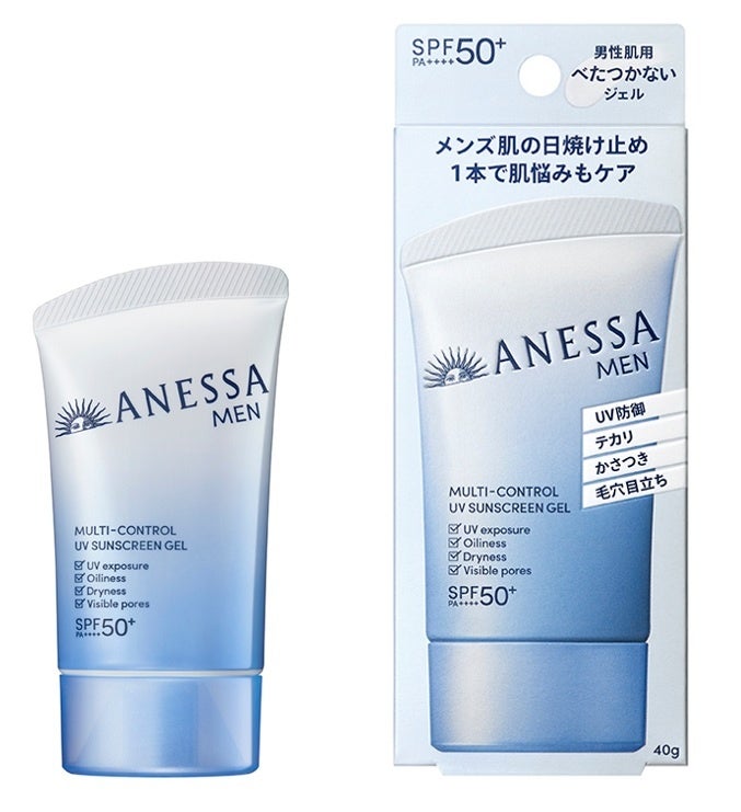 そこでアネッサは、紫外線ケアに加え、「テカリ」「かさつき」「毛穴目立ち」など、男性特有の肌悩みをマルチにケアする「アネッサ マルチ コントロールUV ジェル」の発売により、男性がスキンケア感覚で紫外線ケアを行える新習慣の創造を目指します。皮脂吸着&皮脂固化のダブルケア処方、肌にうるおいを与えるスキンケア成分配合。毎日これ一本で化粧水・乳液・UV防御効果までできるジェルで、男性でもべたつかず、清潔感のある肌へと導きます。