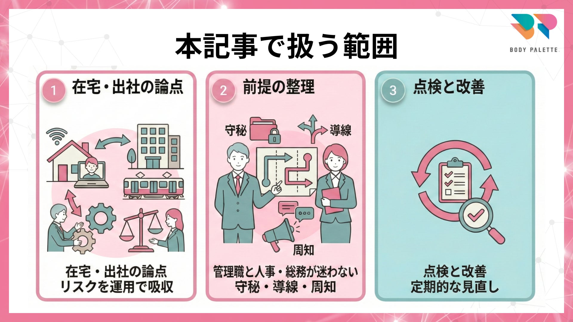 ・在宅/出社それぞれのリスクを運用で吸収するための論点整理