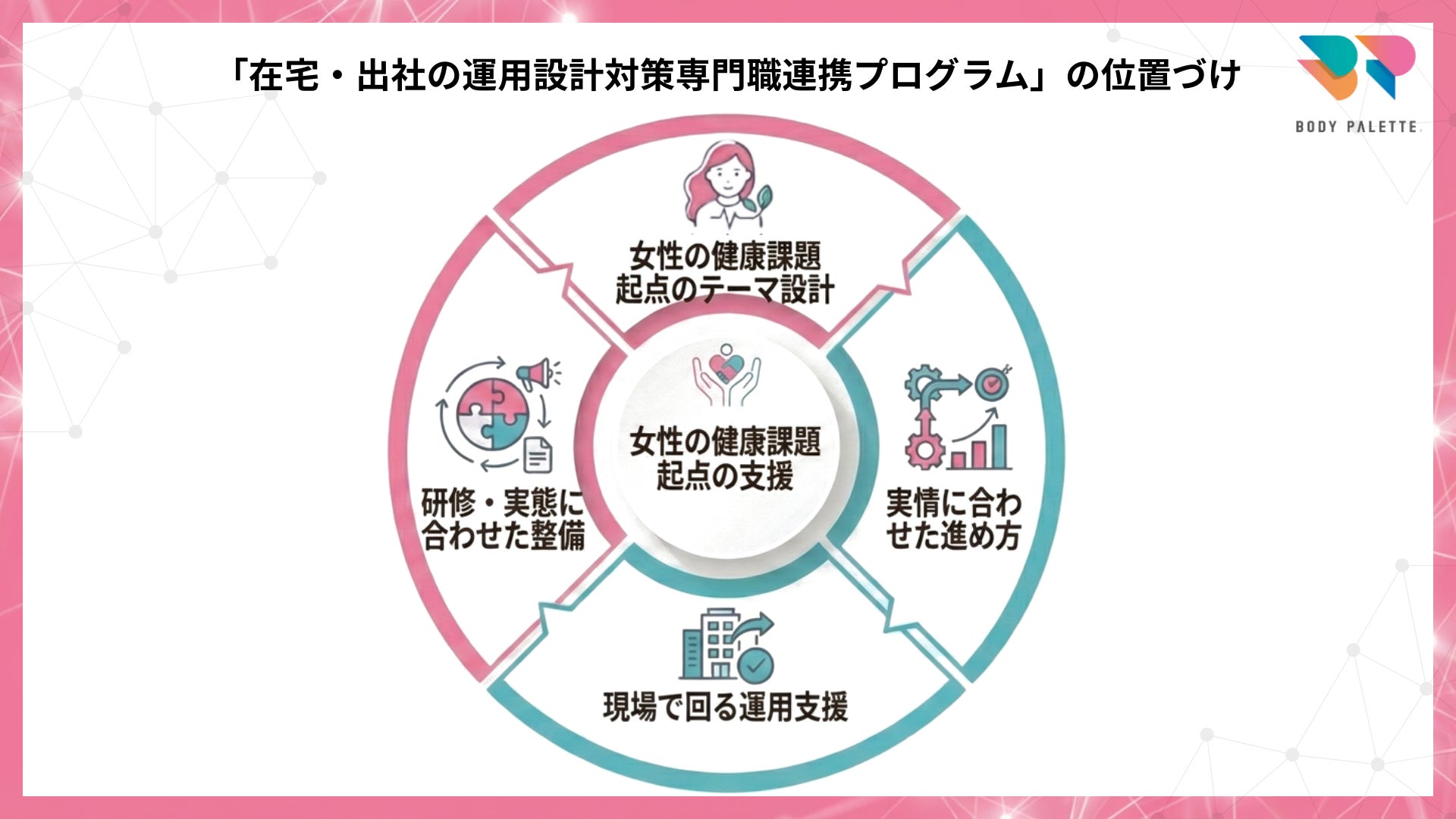 「在宅・出社の運用設計対策専門職連携プログラム」の位置づけ