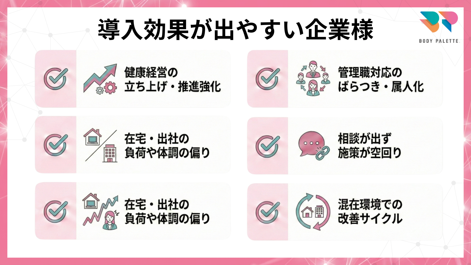 女性の健康課題はセンシティブ情報を含むため、なおさら「現場で回る運用設計」が重要になります。
