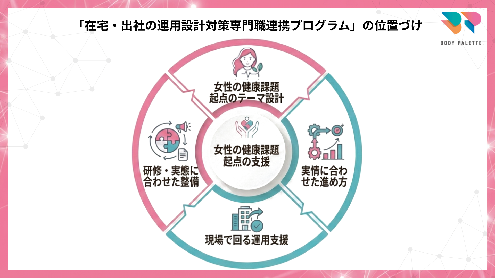 「在宅・出社の運用設計対策専門職連携プログラム」の位置づけ