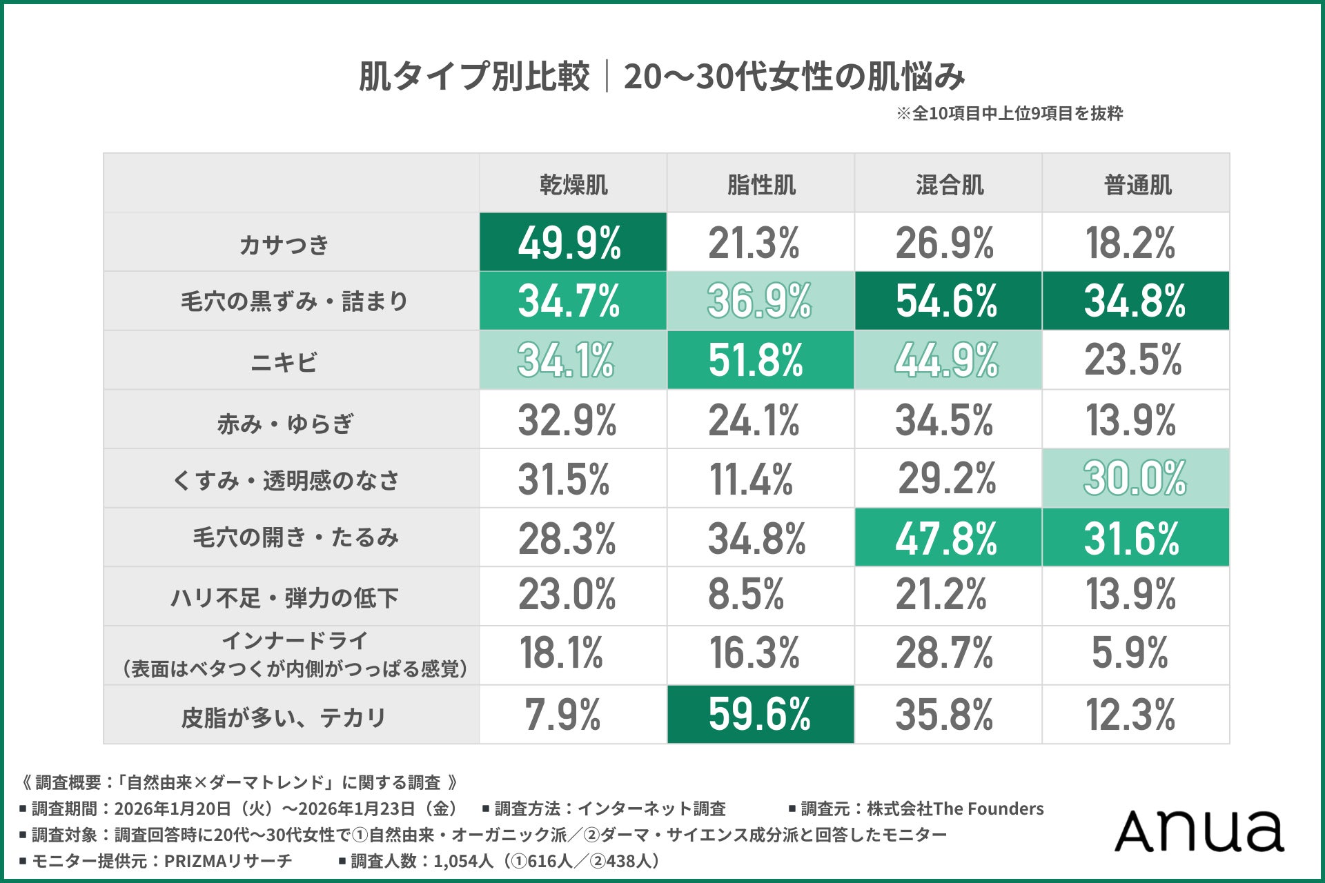 株式会社The Foundersが販売する化粧品ブランド「Anua(アヌア)」(https://anuashop.jp/)は、20代~30代女性で①自然由来・オーガニック派/②ダーマ・サイエンス成分派の方を対象に、「自然由来×ダーマトレンド」に関する調査を実施しました。