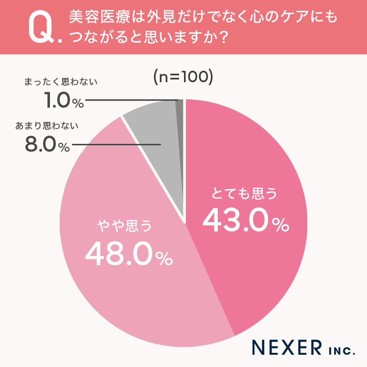 まず、美容医療に興味がある方を対象に、美容医療は外見だけでなく心のケアにもつながると思うかを聞いてみました。