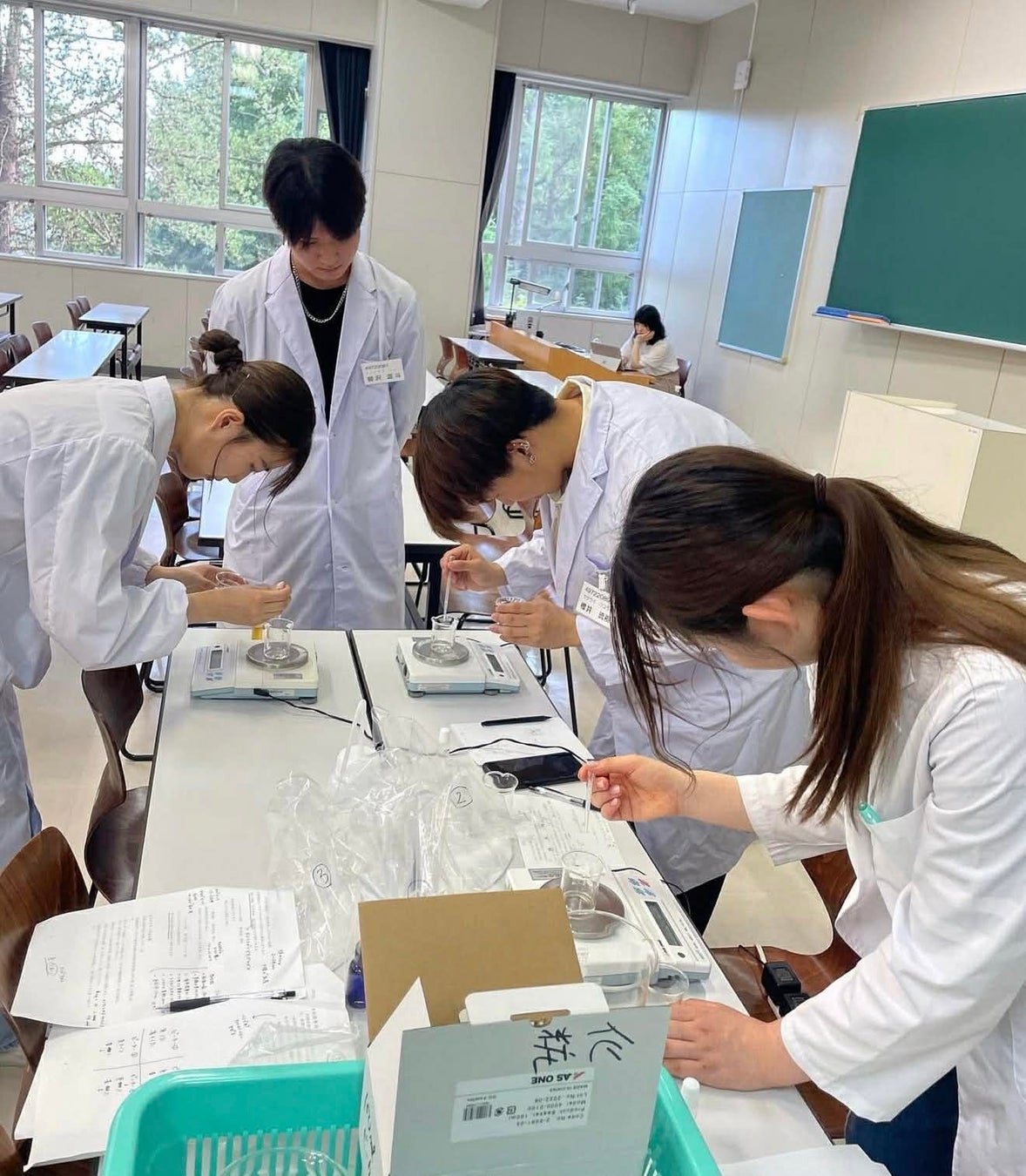 細胞試験を行うバイオ実験室から、香りを分析する精密機器、実際にクリームやローションを試作する製剤実習まで、企業の研究職に近い環境で学生たちはスキルを磨いています。