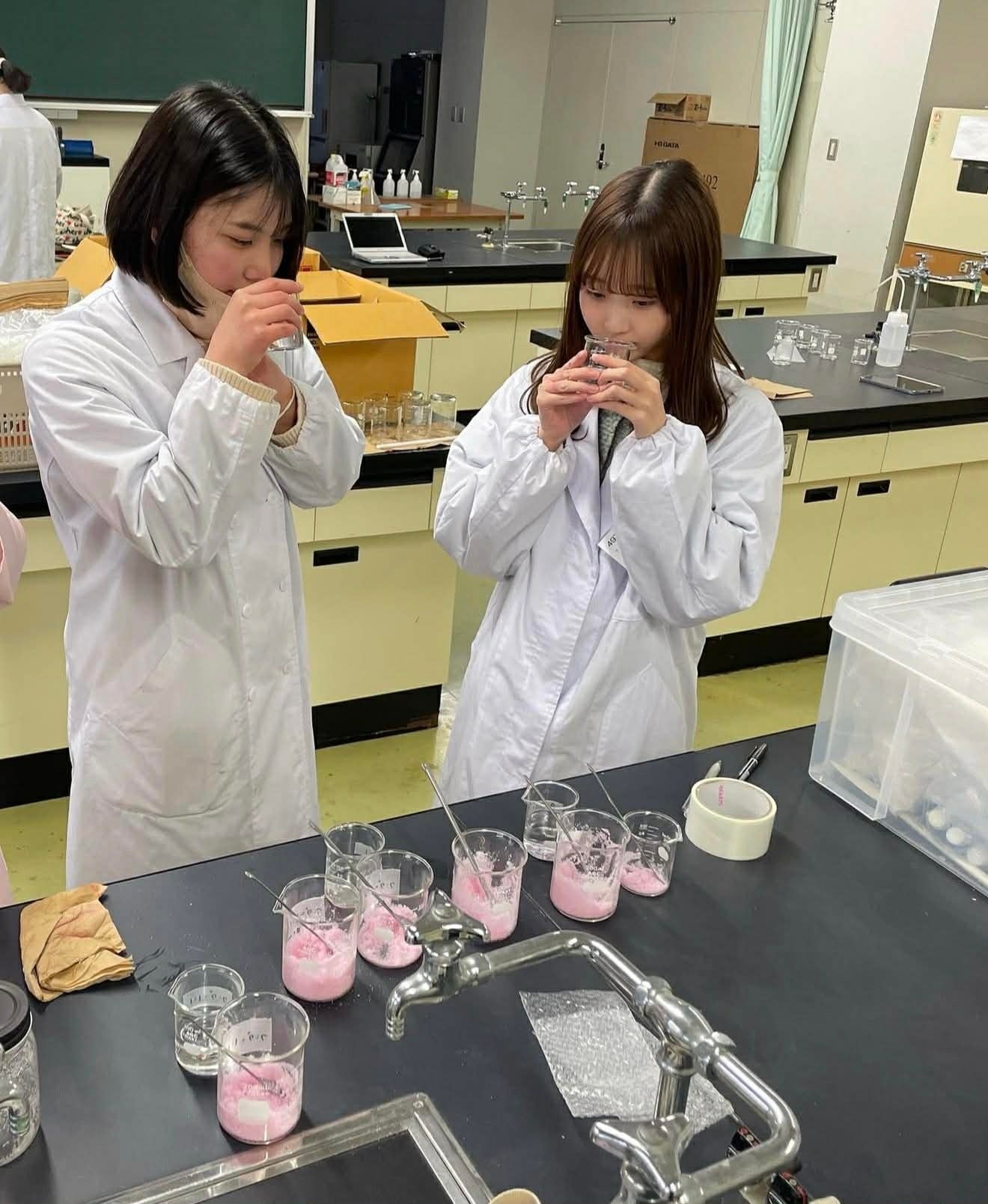 細胞試験を行うバイオ実験室から、香りを分析する精密機器、実際にクリームやローションを試作する製剤実習まで、企業の研究職に近い環境で学生たちはスキルを磨いています。