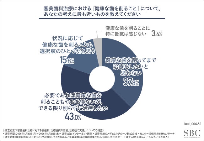 SBCメディカルグループホールディングス(所在地:米国カリフォルニア州、CEO:相川 佳之)の連結子会社であり、医療機関への経営支援事業を展開するSBCメディカルグループは、①セラミック治療をしたことがある方502名、②審美歯科治療に興味がある方504名を対象に、審美歯科治療に対する価値観、治療選択の背景、治療後の実感について調査を実施しました。