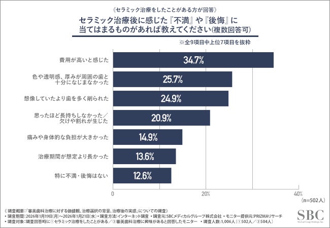 ■過去にセラミック治療を受けた経験者が感じた課題。「費用」や「周囲の歯との調和」が上位に