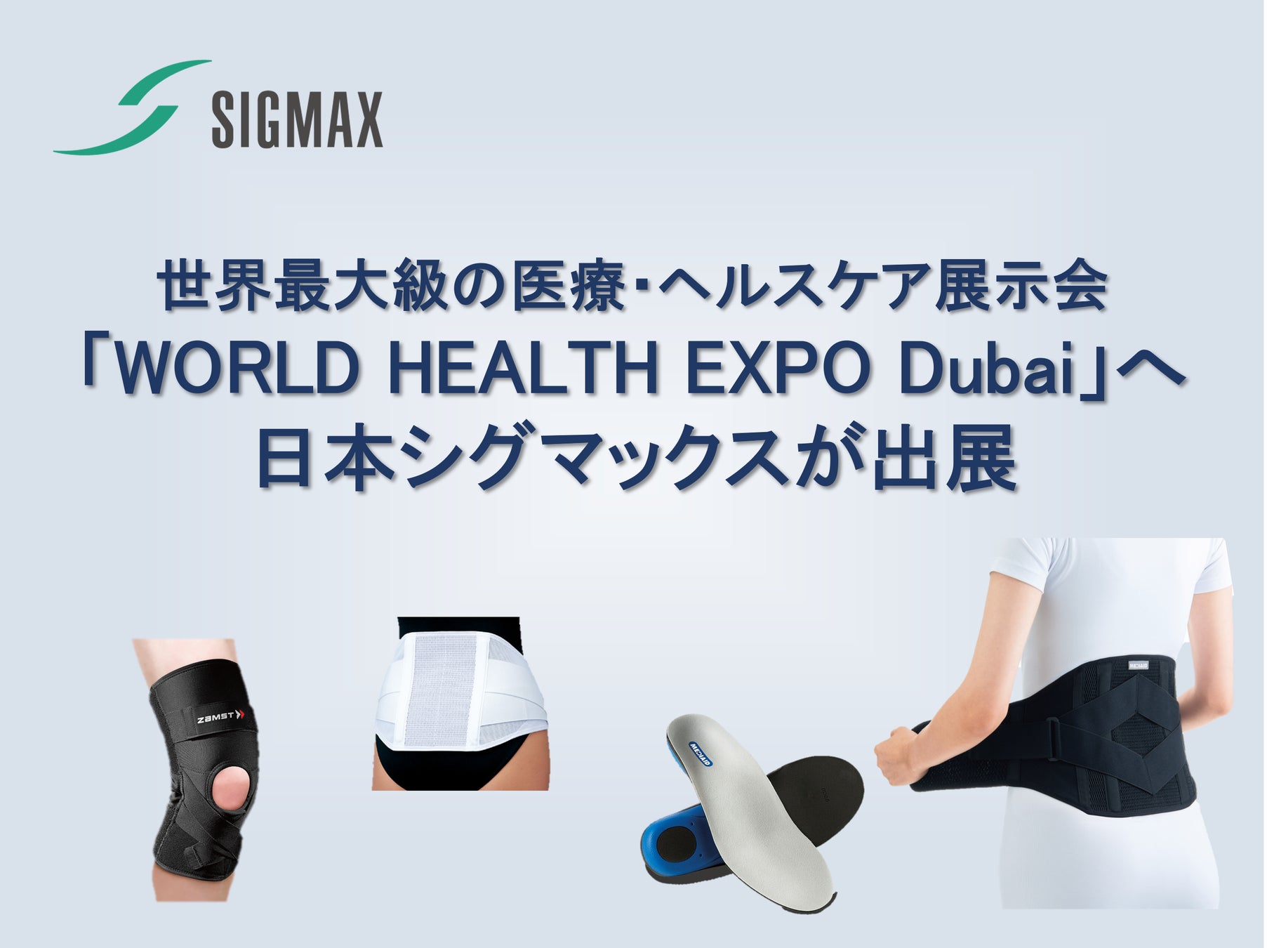 日本シグマックス株式会社(本社:東京都新宿区、代表取締役社長:鈴木洋輔)は、2月9日からアラブ首長国連邦・ドバイで開催される世界最大級の医療・ヘルスケア展示会「WORLD HEALTH EXPO Dubai」へ日常生活向けサポーターブランド「MEDIAID(メディエイド)」をはじめとするサポーター・インソール製品を展示いたします。