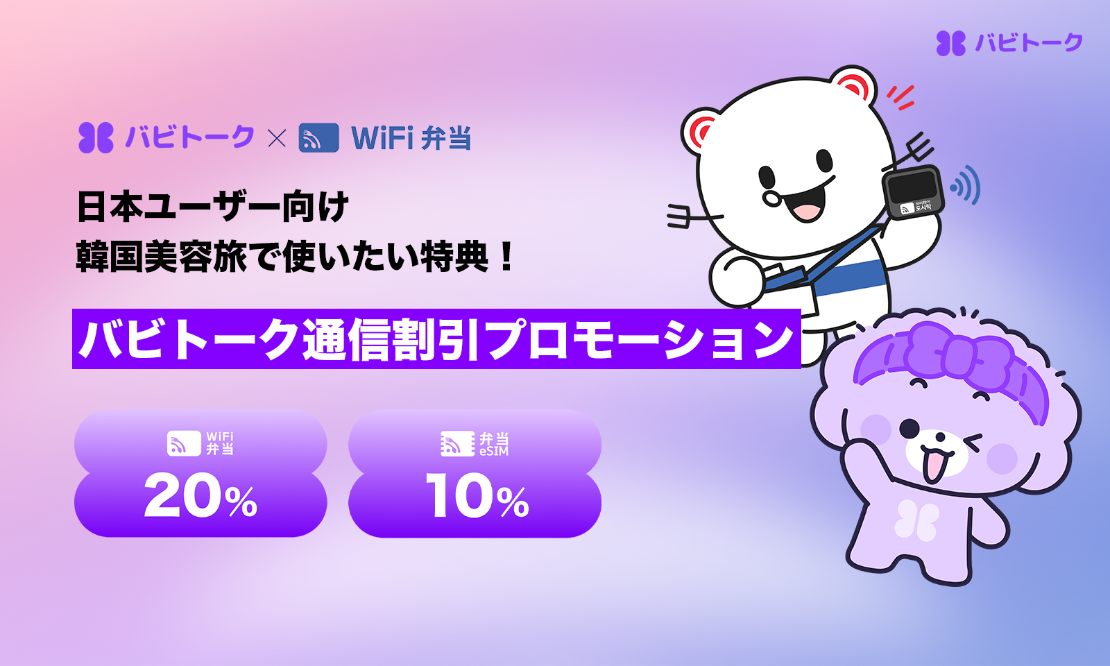 本プロモーションは、韓国を訪れる日本ユーザーに、安定した通信環境をよりリーズナブルに提供することを目的に企画されました。バビトークユーザーであればどなたでも参加可能で、Wi-Fi弁当が20%OFF、DOSIRAK eSIMが10%OFFとなります。本特典により、韓国滞在中の通信費負担を軽減し、より快適な旅行体験をサポートします。