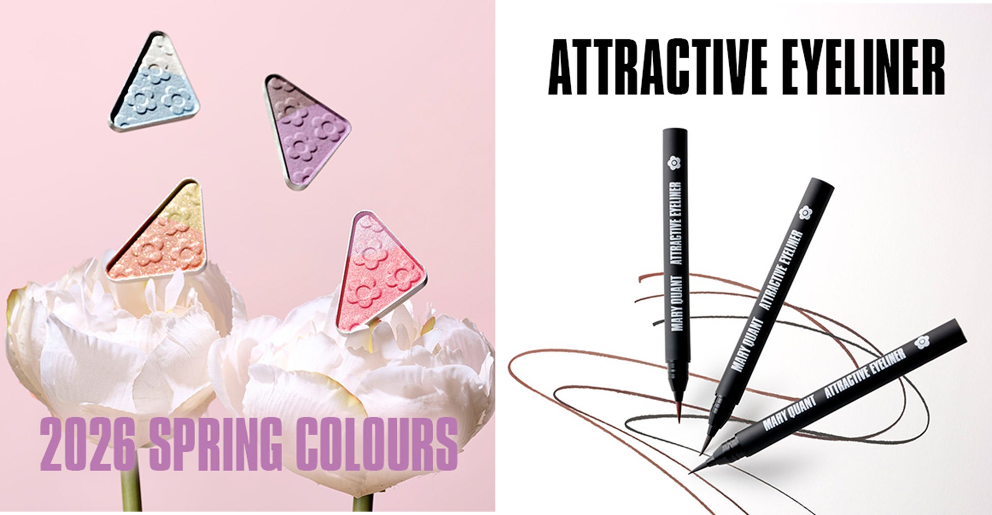 株式会社 マリークワント コスメチックス(本社:東京都渋谷区、代表取締役社長:陶 正治)は、2026年2月6日(金)より、マリークワントの人気アイテム「アイオープナー」から、春の訪れを感じさせる限定カラーとして、1つで2つの色を楽しめるデュオタイプのアイシャドウ(全4色)を数量限定で発売いたします。また、なめらかな描き心地で繊細なラインを実現する筆ペンタイプのリキッドアイライナー「アトラクティブ アイライナー」を、定番2色・数量限定1色の全3色で発売いたします。