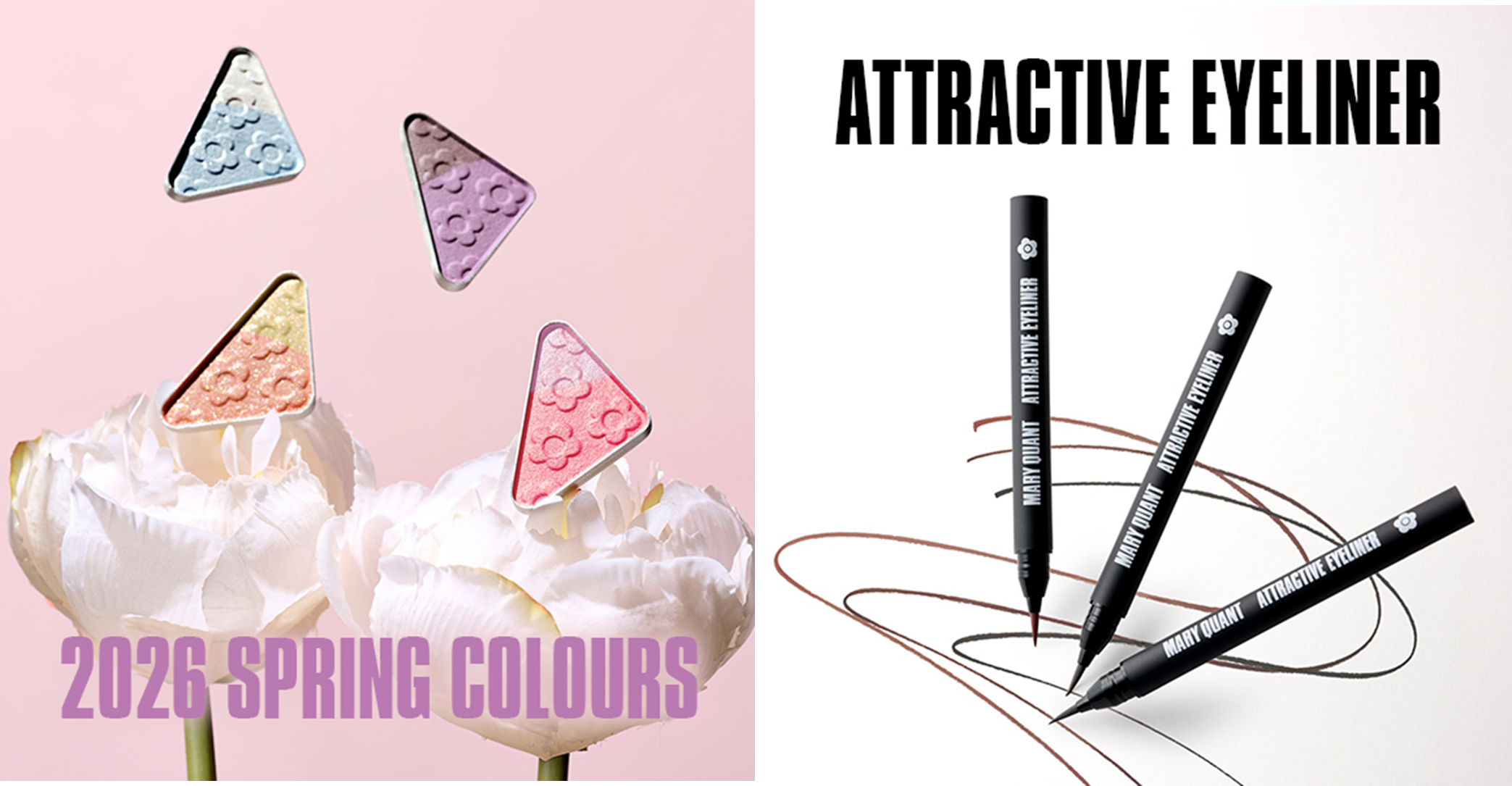 株式会社 マリークワント コスメチックス(本社:東京都渋谷区、代表取締役社長:陶 正治)は、2026年2月6日(金)より、マリークワントの人気アイテム「アイオープナー」から、春の訪れを感じさせる限定カラーとして、1つで2つの色を楽しめるデュオタイプのアイシャドウ(全4色)を数量限定で発売いたします。また、なめらかな描き心地で繊細なラインを実現する筆ペンタイプのリキッドアイライナー「アトラクティブ アイライナー」を、定番2色・数量限定1色の全3色で発売いたします。