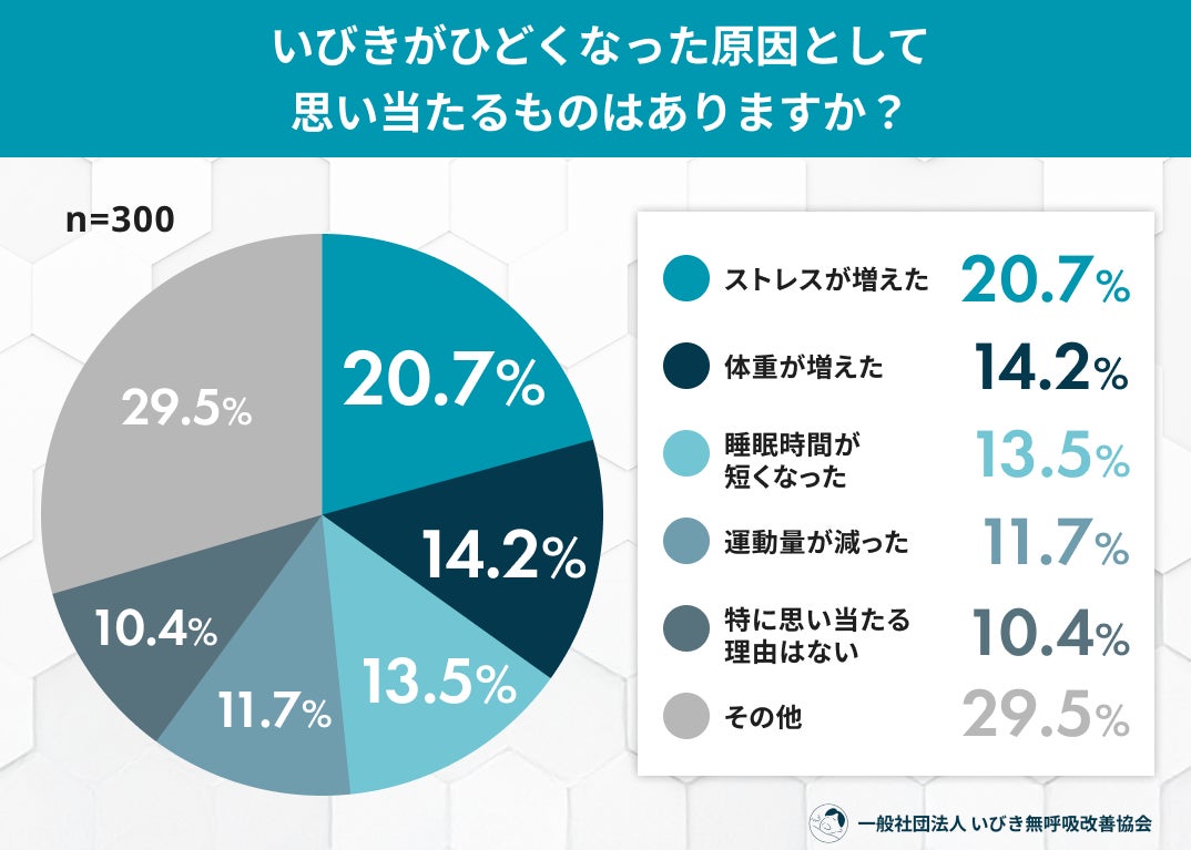 いびき悪化の要因は「ストレスが増えた」20.7%が最多