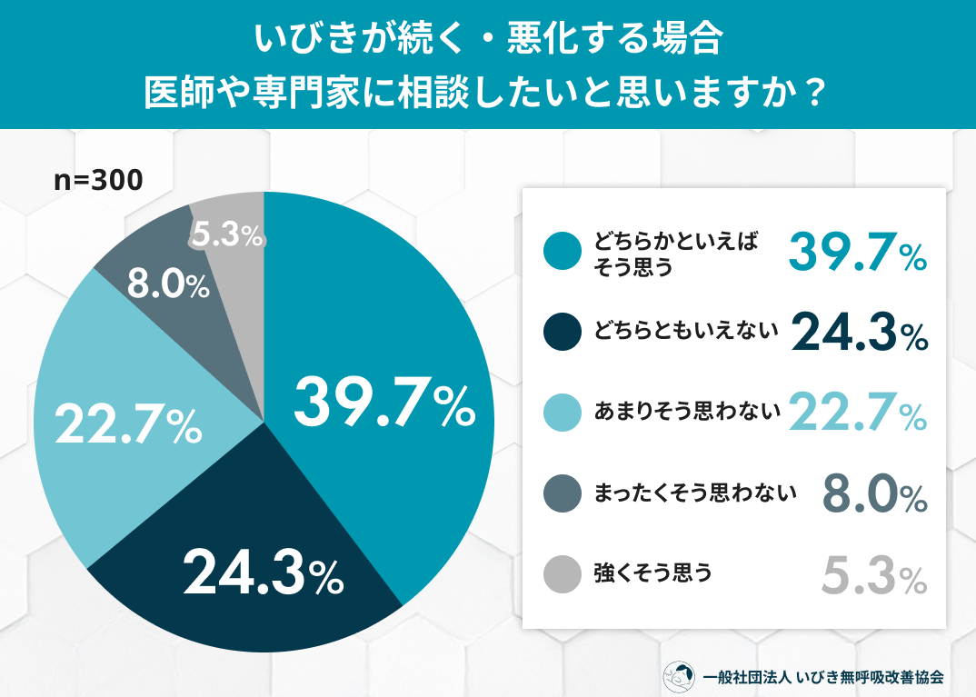 Q5. いびきが続く・悪化する場合、医師や専門家に相談したいと思いますか?