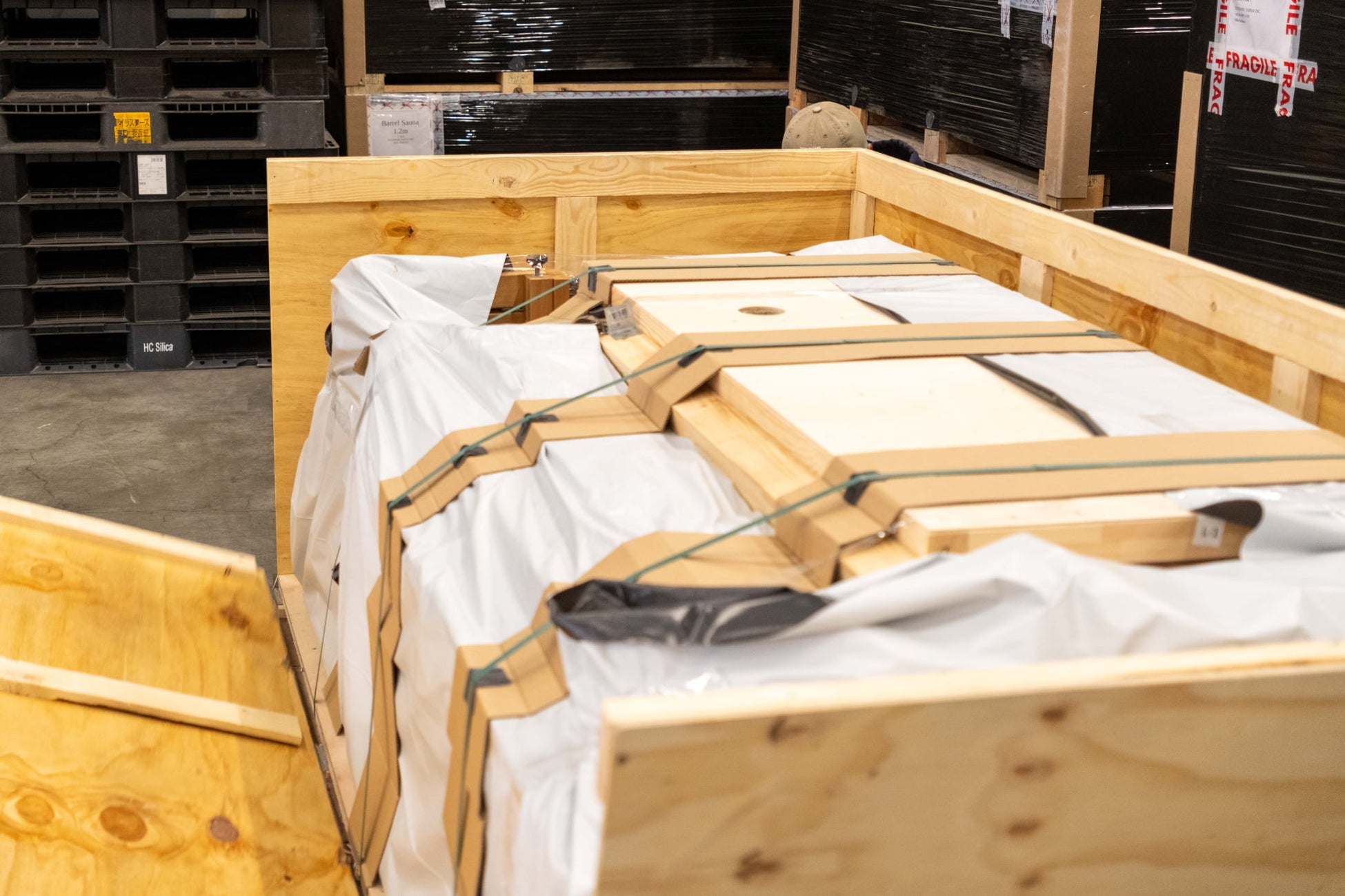 次に見学するのは、2.2mモデルのバレルサウナの出荷作業です。