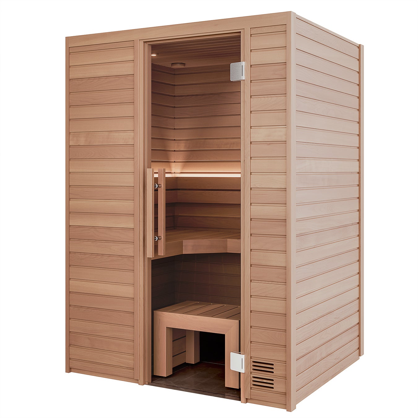 2024年に高橋さん・清水みさとさん夫妻のご自宅にサウナを導入する際、清水みさとさんのこだわりを詰め込んだキャビンサウナを特注で開発。本製品は、この特注サウナと同型モデルのキャビンサウナを新たに商品化したものです。