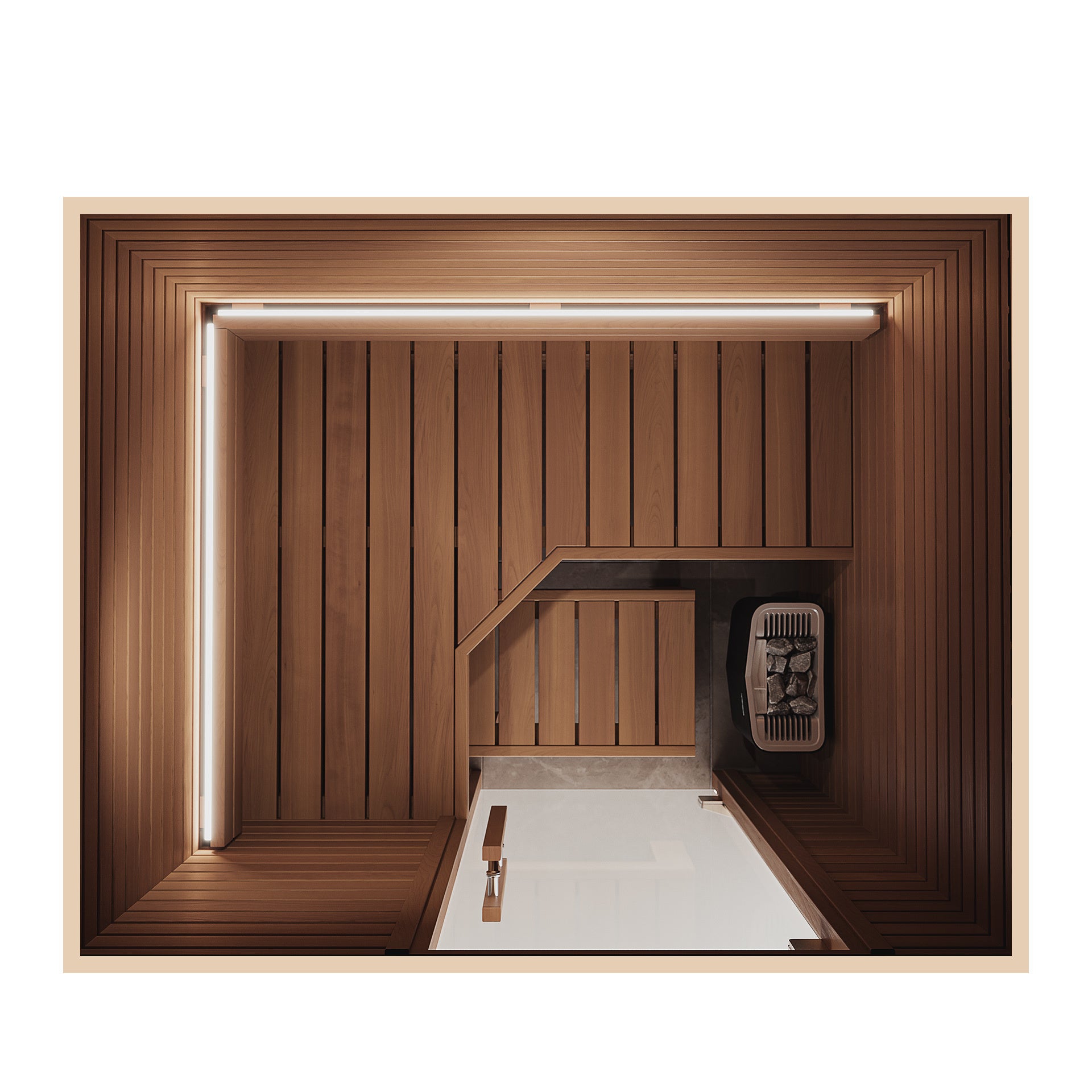 2024年に高橋さん・清水みさとさん夫妻のご自宅にサウナを導入する際、清水みさとさんのこだわりを詰め込んだキャビンサウナを特注で開発。本製品は、この特注サウナと同型モデルのキャビンサウナを新たに商品化したものです。