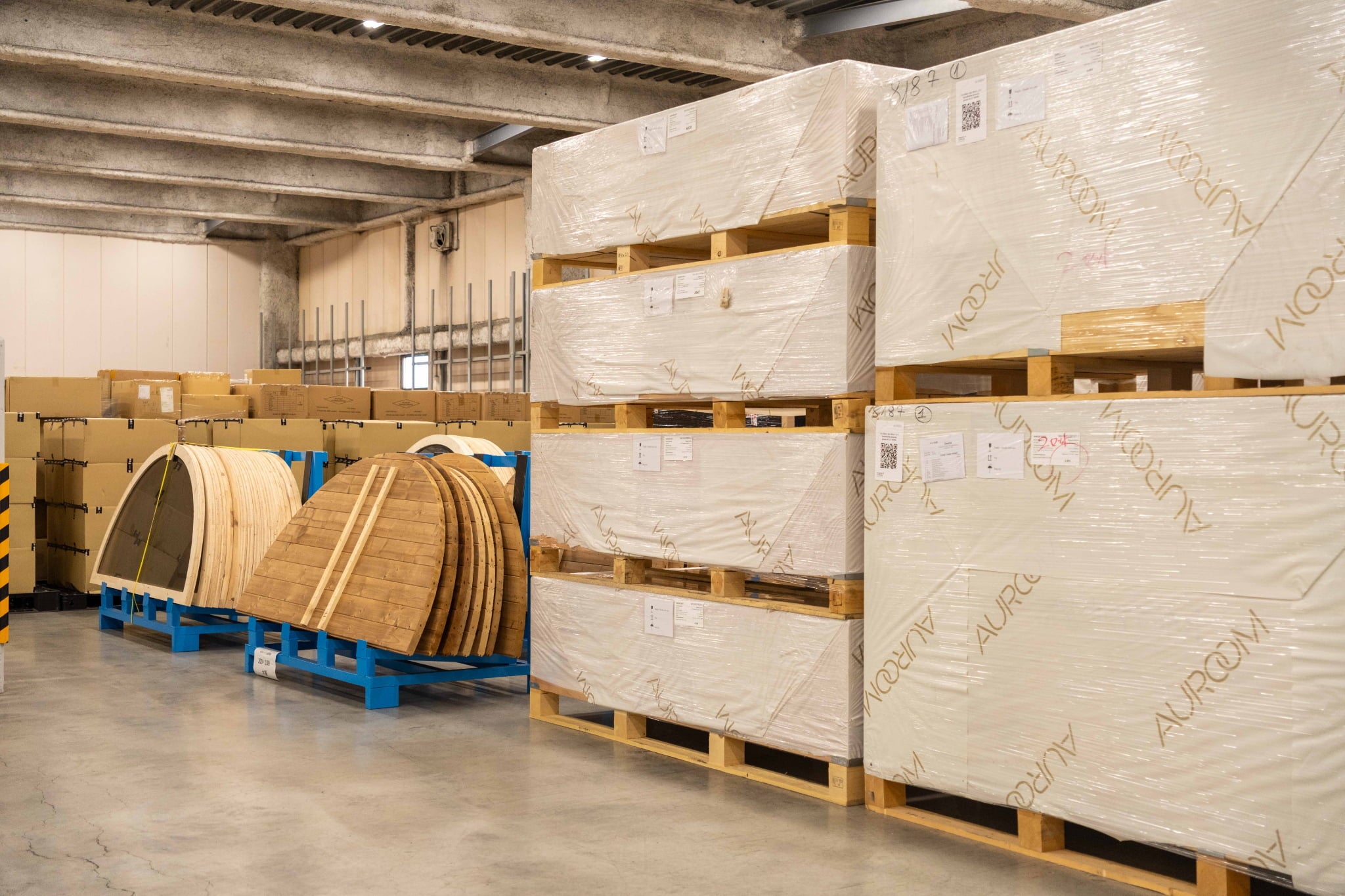 約100台のサウナが眠る倉庫に潜入、サウナの組み立てテストや出荷の様子も