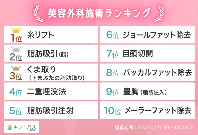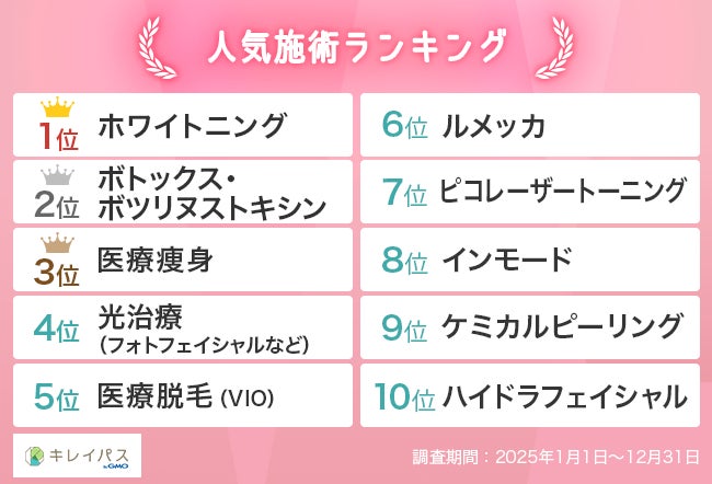 【「キレイパス byGMO」2025年美容医療人気ランキング】